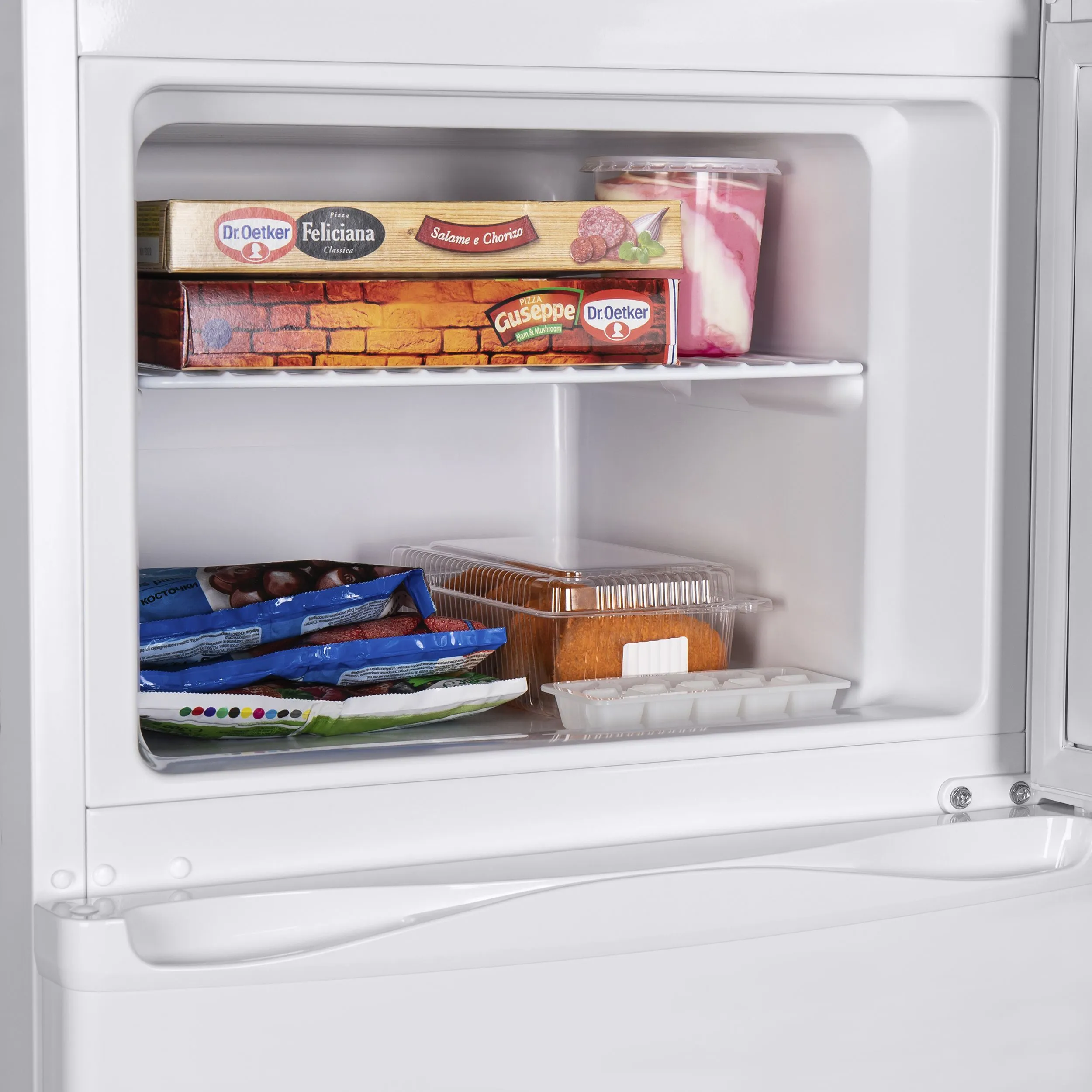 Современный двухкамерный холодильник с верхней морозильной камерой объемом 41 л. Система охлаждения — DeFrost.