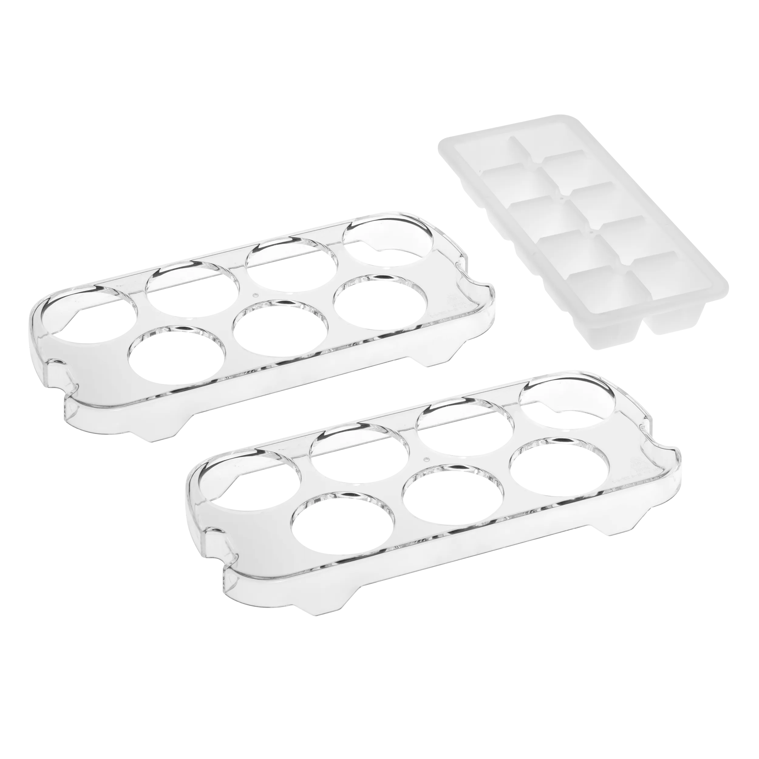 Полки из закаленного стекла, ящики в холодильной и морозильной камере, полки на двери, решетка для бутылок, формочка для льда, подставка для яиц