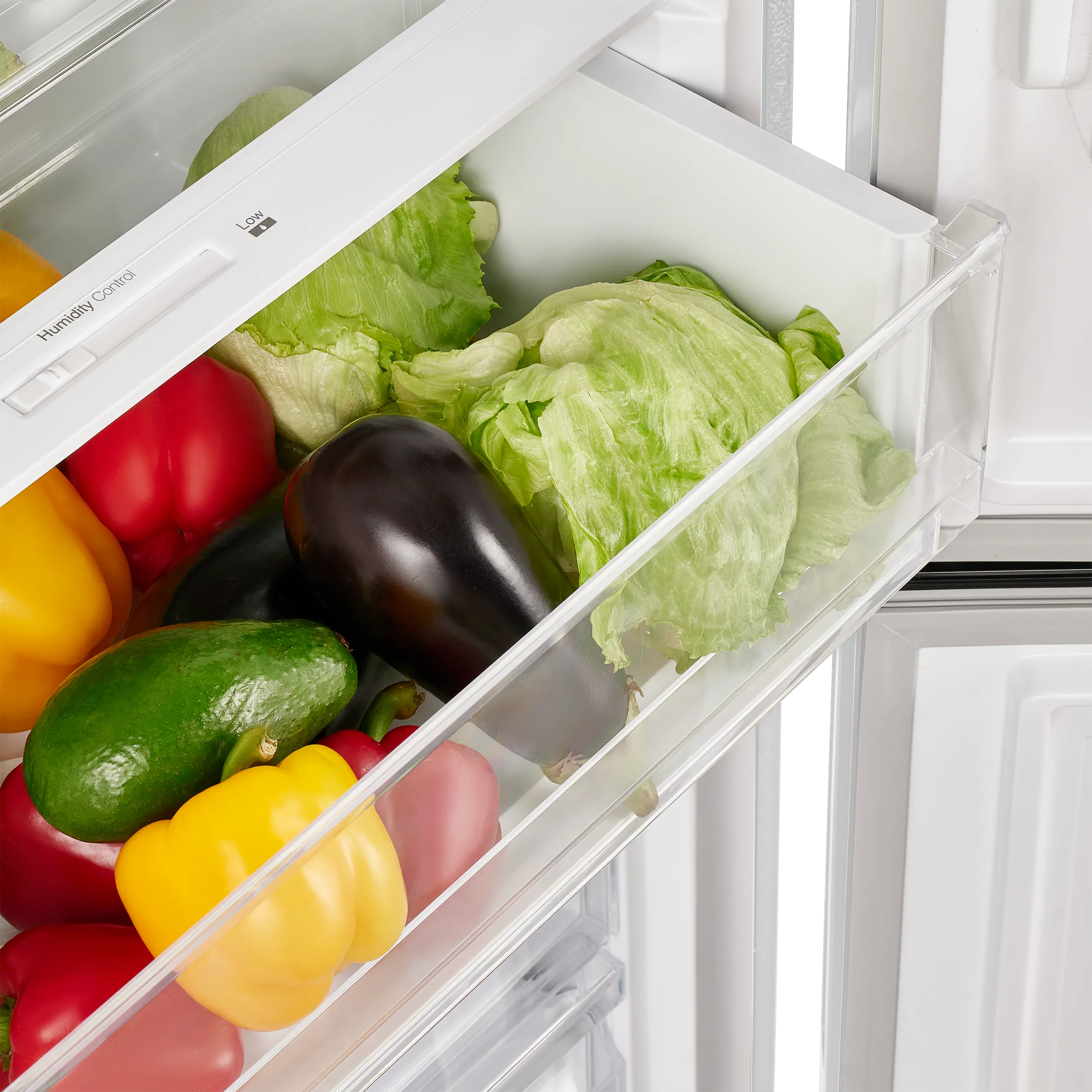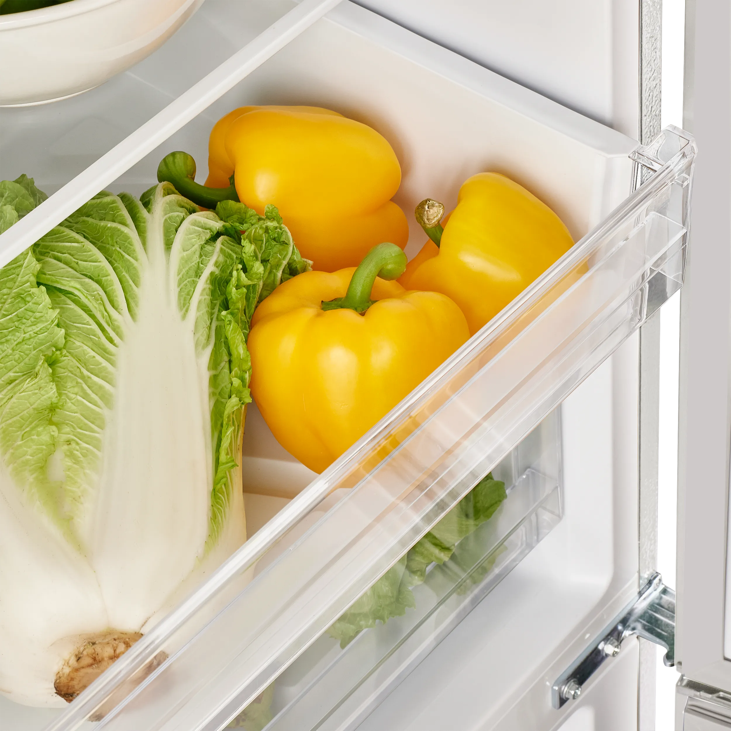 Просторный двухкамерный холодильник MAUNFELD MFF200NFSTWE с системой Total NoFrost избавит вас от ручного размораживания. При высоте 2 метра и ширине 60 см общий объем составляет 356 л, а ящики для овощей с регулировкой влажности продлевают их свежесть. Тихая работа (39 дБ), класс энергоэффективности A+ и возможность перенавешивания дверей делают его идеальным выбором для любой кухни.
