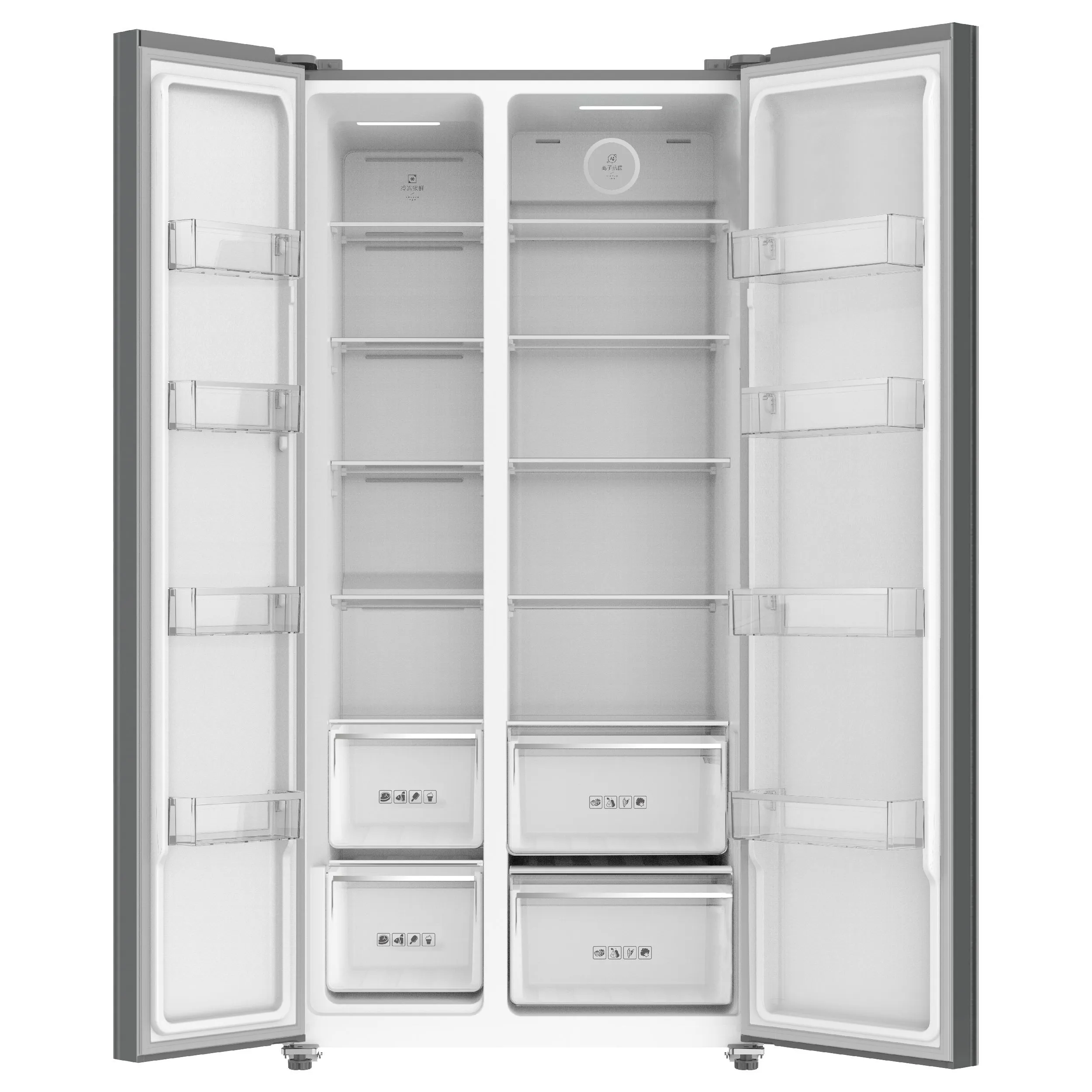 Холодильник Side-By-Side, А++, инверторный компрессор,  cенсорное управление, Full NO FROST, Dynamic Air Cooling, скрытые ручки,  режимы «Супер заморозка» и «Супер охлаждение», LED освещение камеры,  2 ящика для овощей, полки из закаленного стекла,  2 ящика в морозильном отделении, полки из закаленного стекла, общий полезный объем: 683 л, объем холодильного отделения: 431 л, объем морозильного отделения: 252 л, габариты (ВхШхГ):  1905х910х742 мм,  цвет - черная нержавеющая сталь