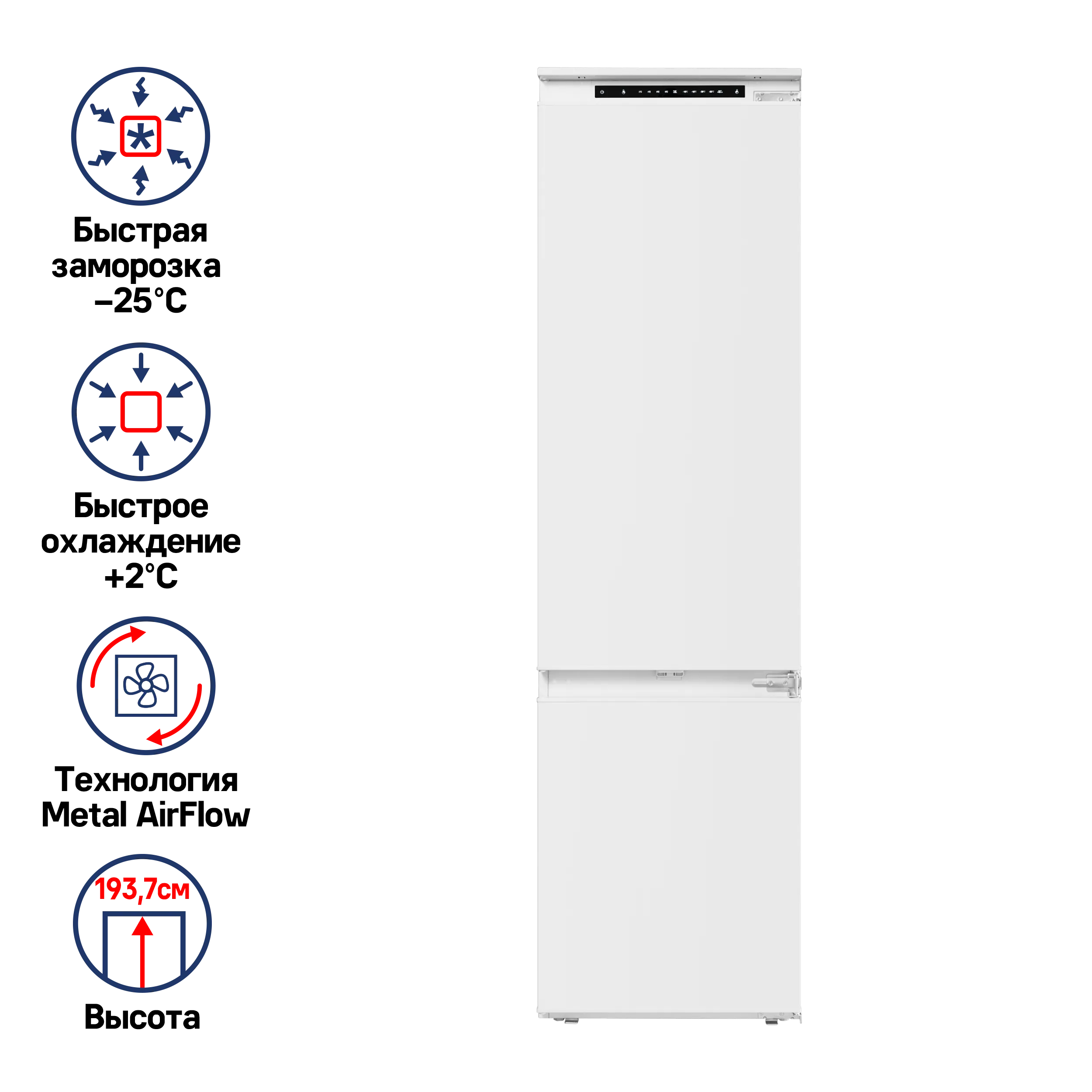 Холодильник-морозильник встраиваемый MAUNFELD MBF19354NFWGR LUX Белый