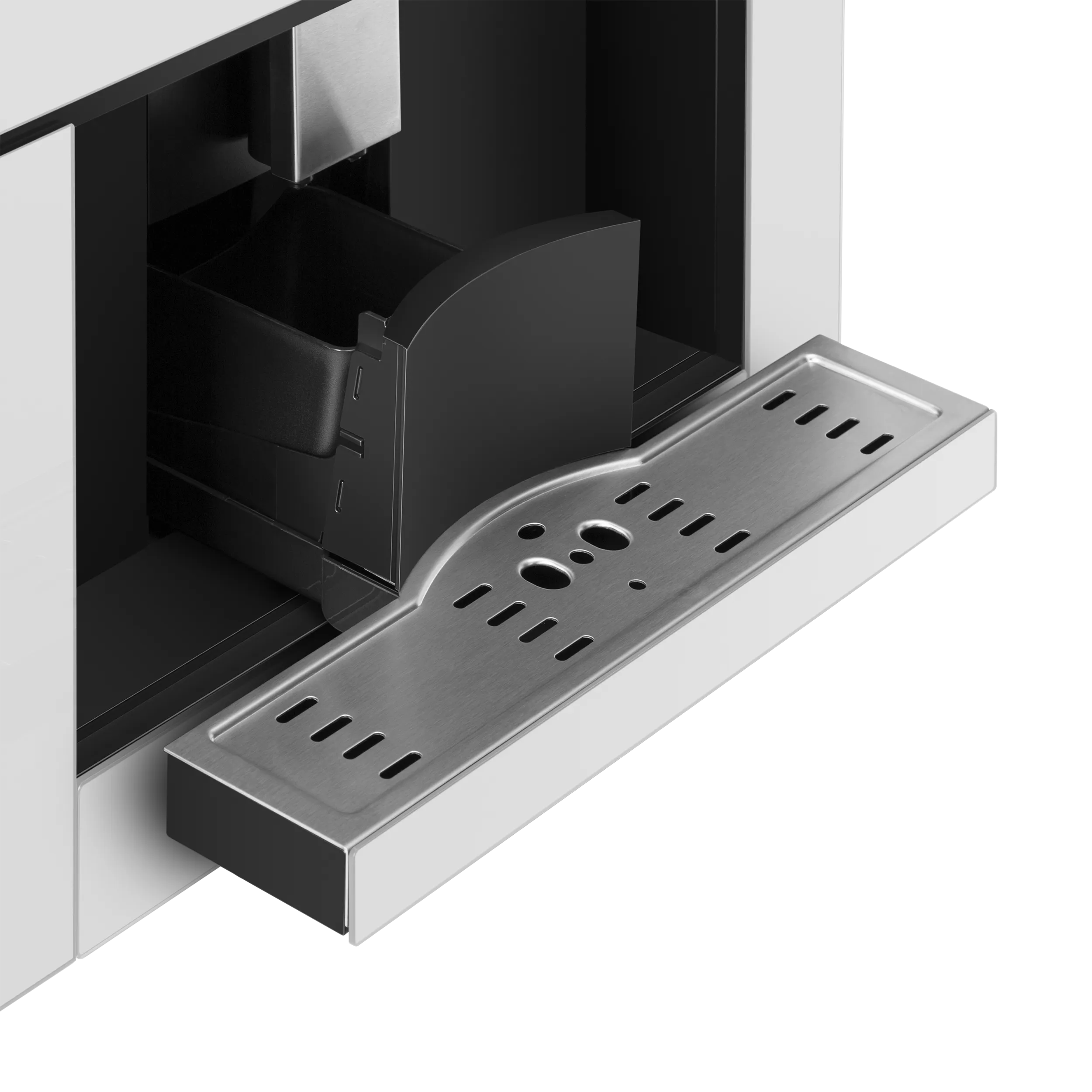 Автоматическая программа очистки от накипи, Автоматическое приготовление эспрессо, Автоматическое промывание системы, Возможность приготовления 2 чашек, Индикатор автоматической очистки, Капучинатор, Наличие кофемолки, Ополаскивание, Регулирование крепости кофе, Регулирование порций кофе, Регулирование размера чашки, Регулирование степени помола, Регулирование температуры воды, Регулирование температуры кофе, Регулировка крепости кофе, Регулировка порции молока, Система очистки, Телескопические направляющие с автоматической блокировкой, Учет серийных номеров, Часы