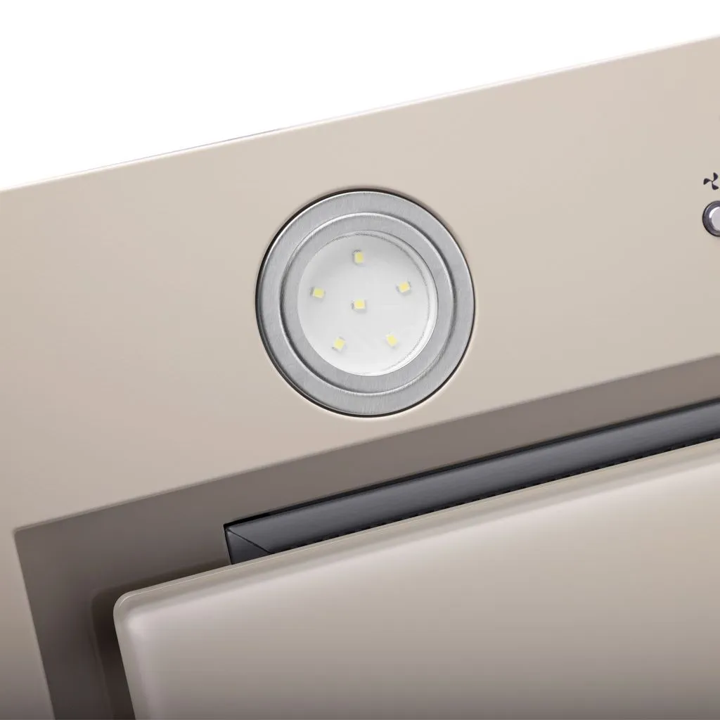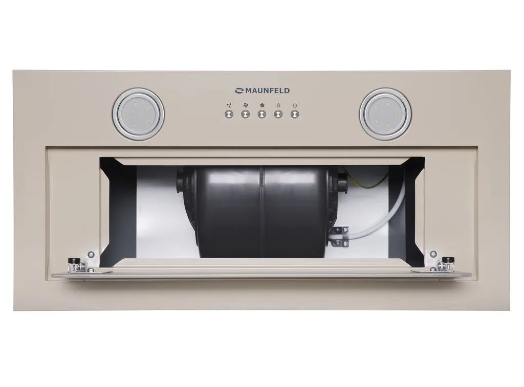 Электронное управление позволяет включить освещение и выбрать одну из 3-х скоростей работы - две стандартные и одна турбо (для быстрой очистки воздуха в экстренных случаях, например, если что-то пригорело). Освещение рабочей поверхности обеспечивается 2-мя LED-лампами по 1 Вт каждая.