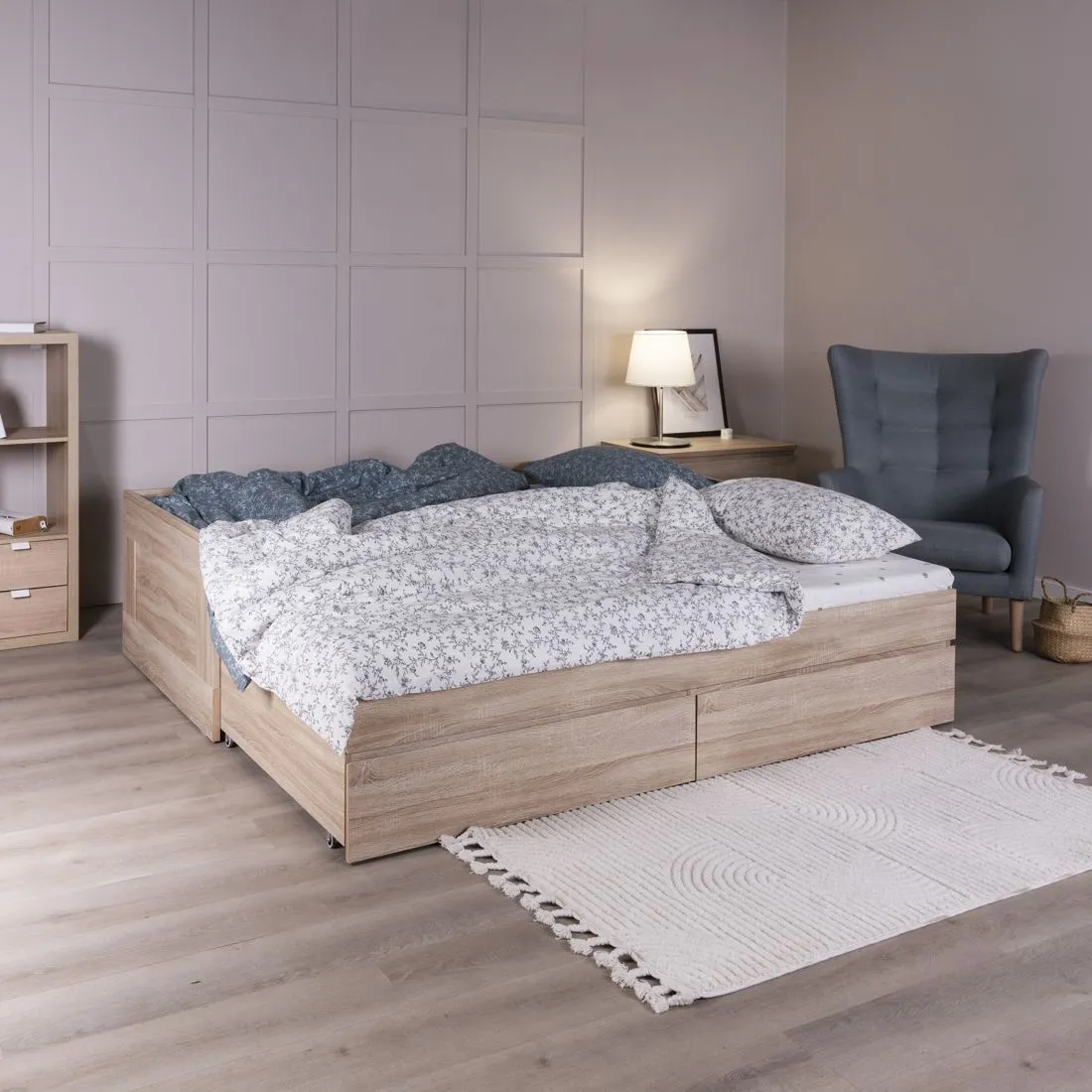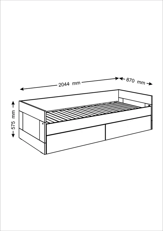 Кровать СИРИУС двухспальная раздвижная с двумя выдвижными ящиками для хранения, с ортопедическим основанием, 2044х870х575, цвет Сонома. Спальное место 80/160х200. Изготовлена из кашированного ДСП толщиной 22 мм. Гарантийный срок для жилых помещений 18 месяцев, для общественных помещений - 12 месяцев.