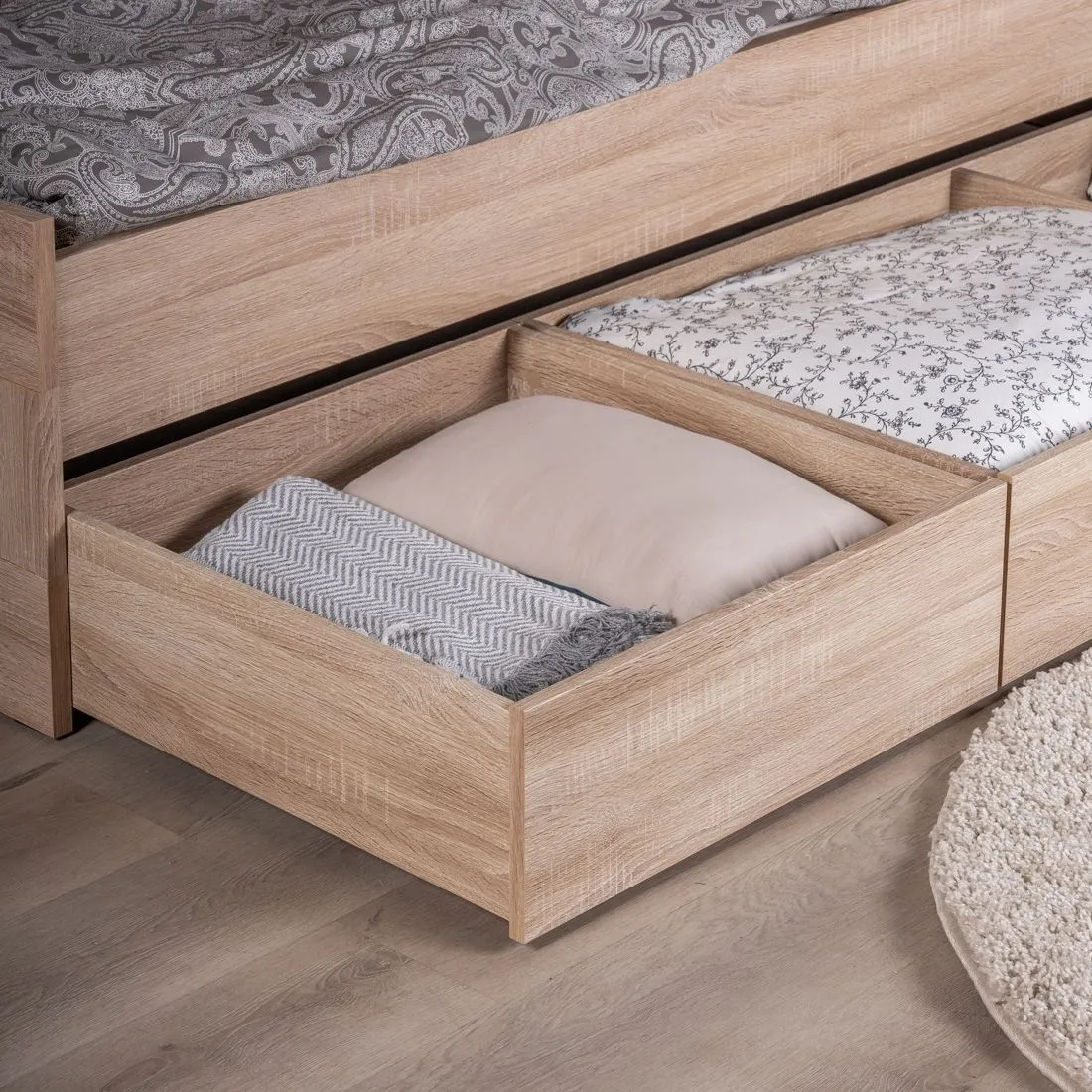 Ящик для хранения под кровать ОРИОН, выкатной 600х600х229, для кроватей СИРИУС и ОРИОН. Цвет Дуб Сонома. Нагрузка на ящик 8 кг. Гарантийный срок для жилых помещений 18 месяцев, для общественных помещений - 12 месяцев.