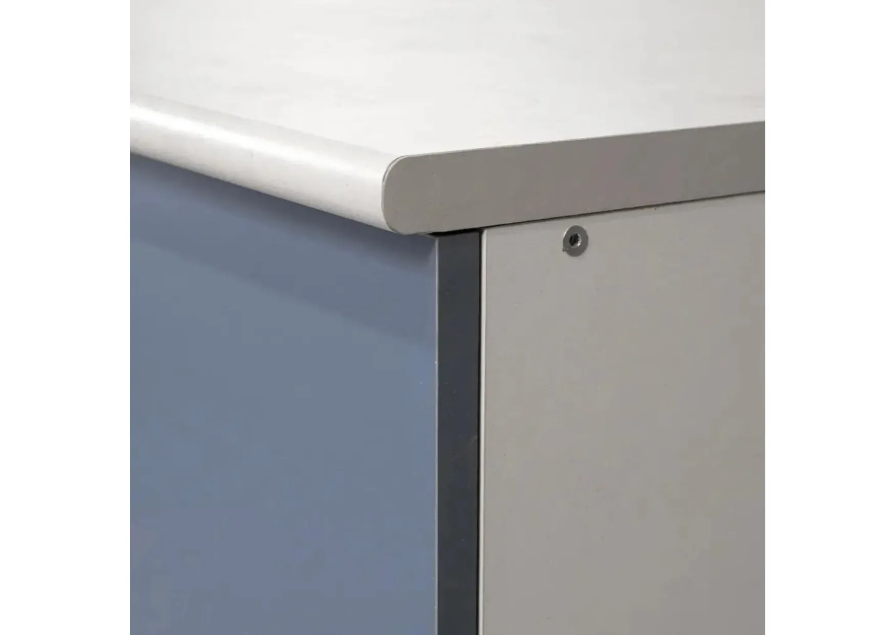 Столешница постформинг "Фристайл" 27 мм, ЛДСП облицованная HPL пластиком. Ручка пластик. Задняя стенка набивная ДВП белая. Ножка пластик, цоколь ЛДСП.
