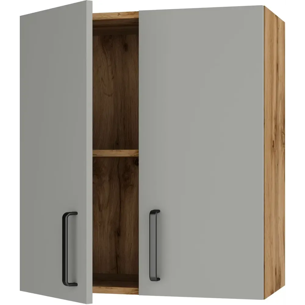 Кухонный навесной шкаф Мирах, цвет серый\дерево является отличным решением для организации кухонного пространства. Он предназначен для крепления к стене, что позволяет максимально использовать вертикальное пространство и сохранить пол под шкафом свободным для других целей. Этот шкаф оснащен дверями, что обеспечивает удобный доступ к хранящимся внутри предметам.