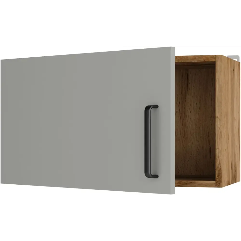 Кухонный навесной шкаф Мирах, цвет серый\дерево является отличным решением для организации кухонного пространства. Он предназначен для крепления к стене, что позволяет максимально использовать вертикальное пространство и сохранить пол под шкафом свободным для других целей. Этот шкаф оснащен дверями, что обеспечивает удобный доступ к хранящимся внутри предметам.