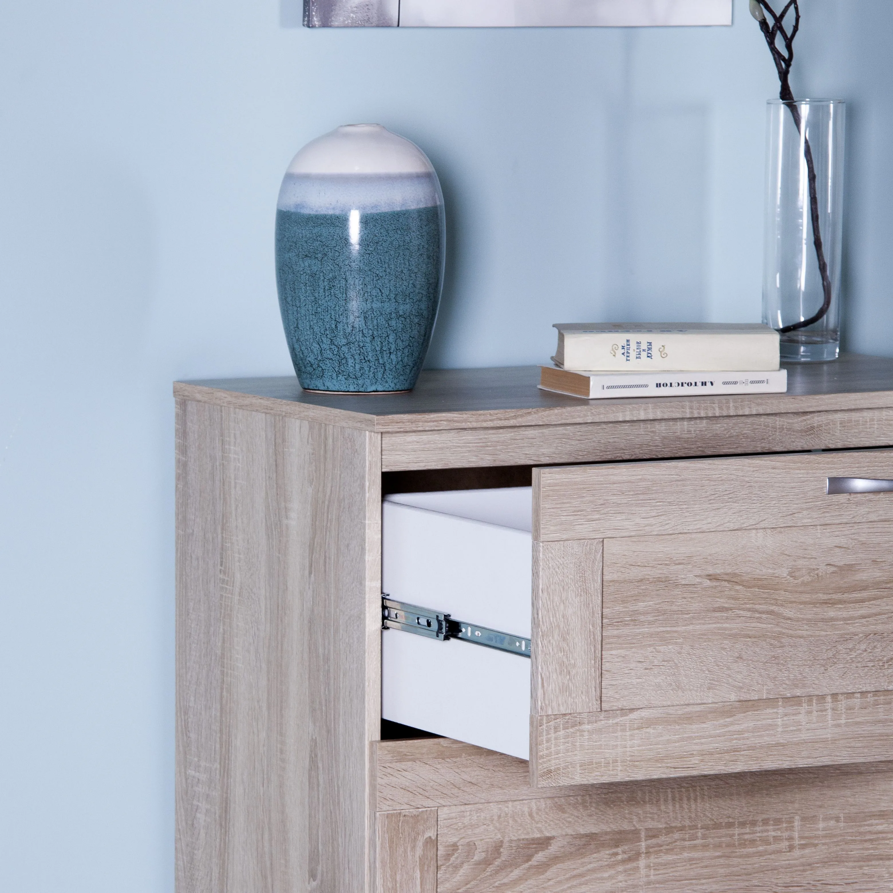 Комод СИРИУС с тремя наружными выдвижными ящиками, 782х412х946, цвет Дуб Сонома. Изготовлен из кашированного ДСП толщиной 16 мм. Крепится к стене. Гарантийный срок для жилых помещений 24 месяца, для общественных помещений - 18 месяцев.