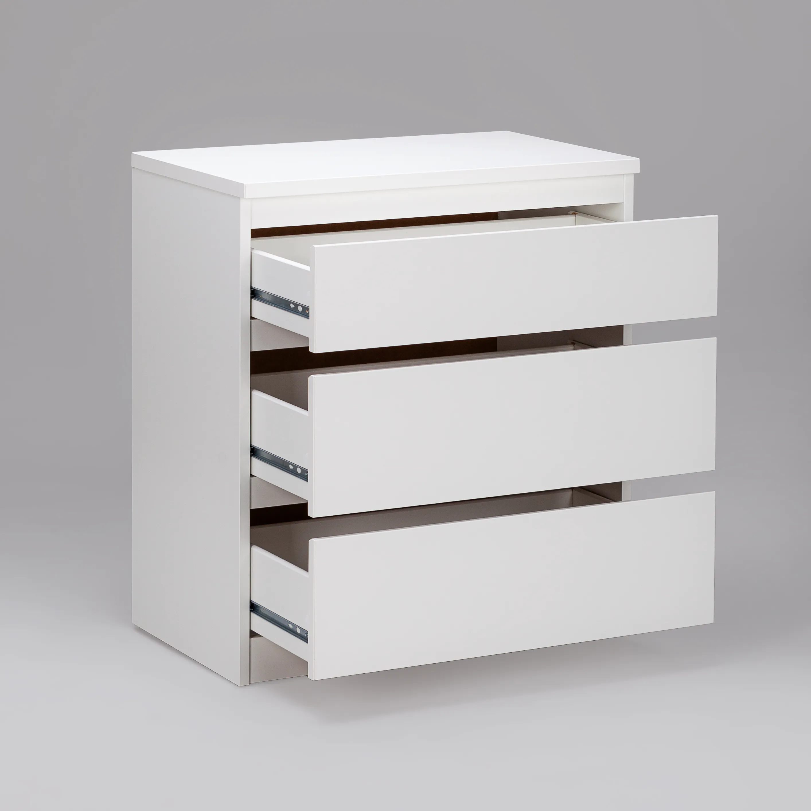 Комод КАСТОР с тремя наружными выдвижными ящиками, 650х396х716, цвет Белый. Изготовлен из кашированного ДСП толщиной 16 мм. Крепится к стене. Гарантийный срок для жилых помещений 24 месяца, для общественных помещений - 18 месяцев.