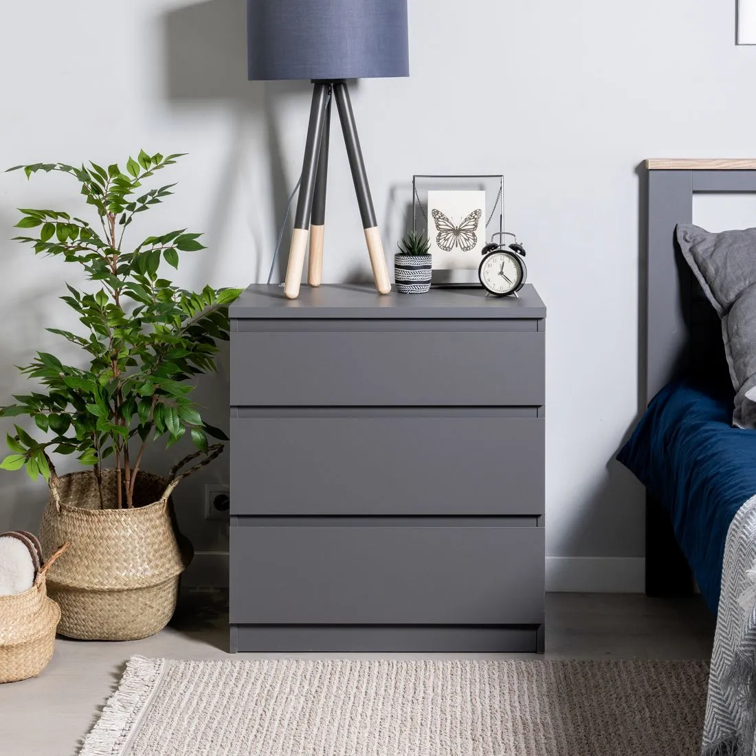 Комод КАСТОР с тремя наружными выдвижными ящиками, 650х396х716, цвет Серый. Изготовлен из кашированного ДСП толщиной 16 мм. Крепится к стене. Гарантийный срок для жилых помещений 24 месяца, для общественных помещений - 18 месяцев.
