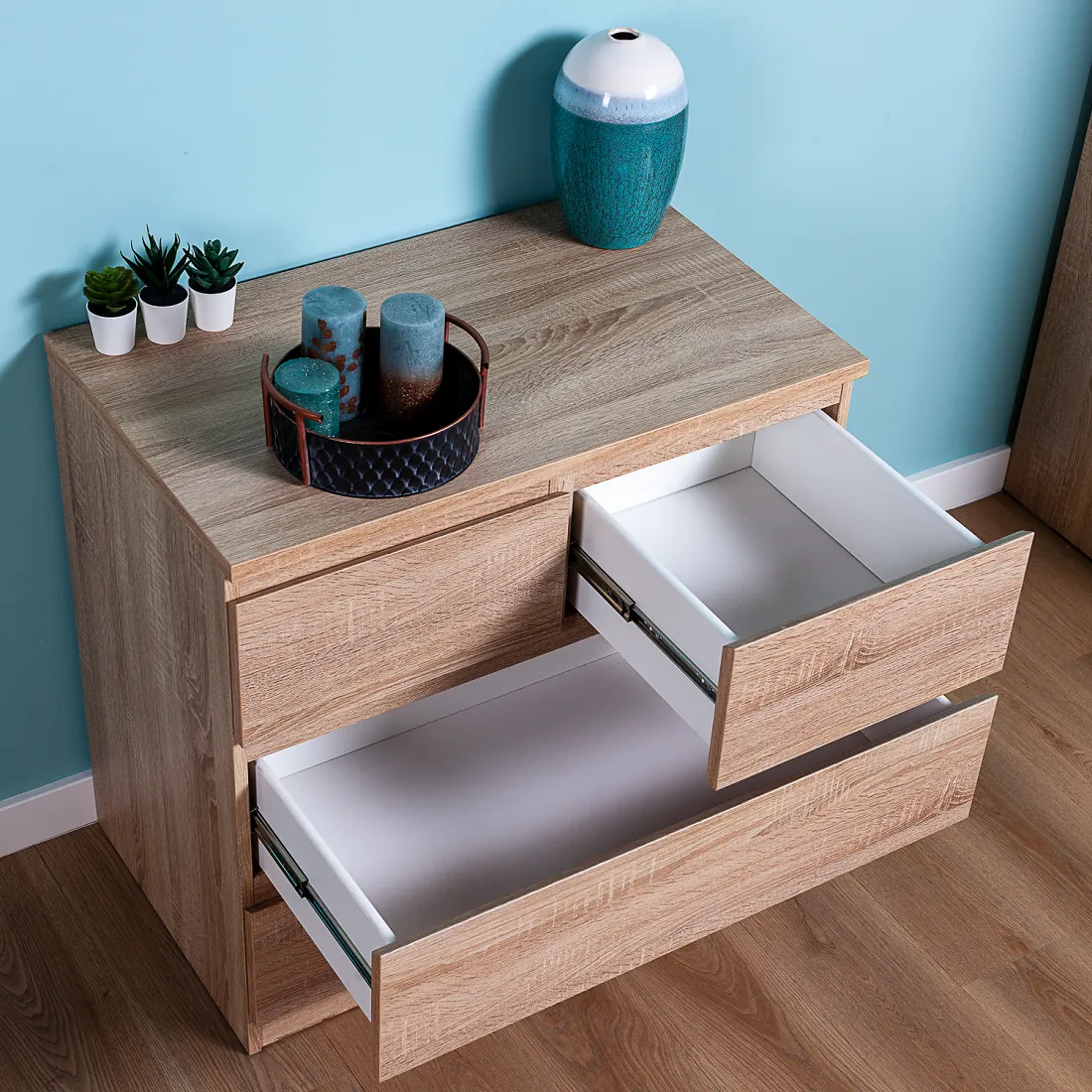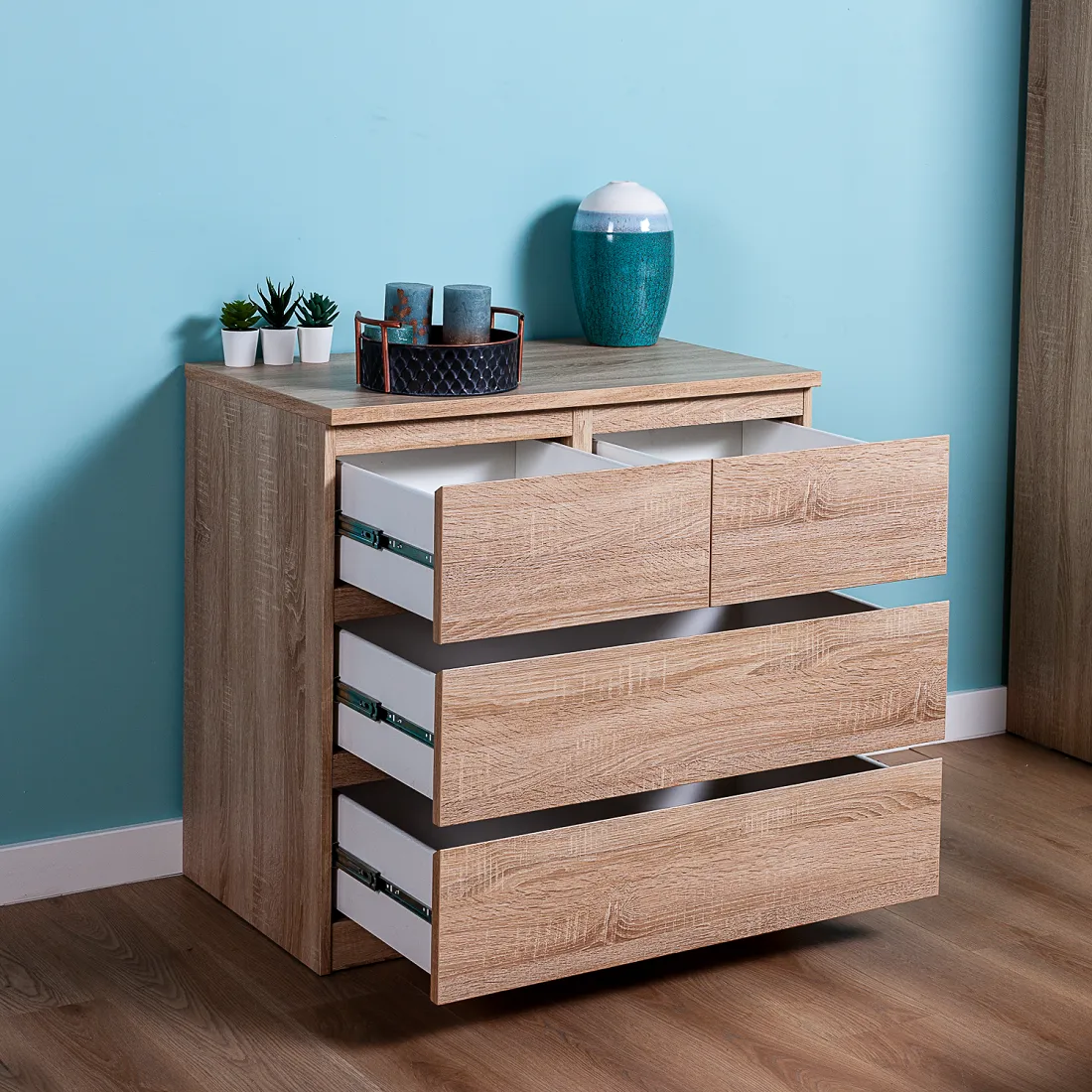 Комод МАЛЬТА с четырьмя выдвижными ящиками, 803х480х764, цвет Дуб Сонома. Крепится к стене. Гарантийный срок для жилых помещений 24 месяца, для общественных помещений - 18 месяцев.