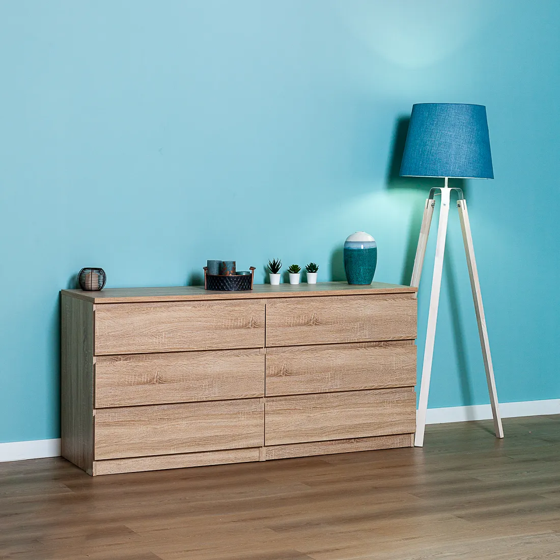 Комод МАЛЬТА с шестью выдвижными ящиками, 1603х480х764, цвет Дуб Сонома. Крепится к стене. Гарантийный срок для жилых помещений 24 месяца, для общественных помещений - 18 месяцев.