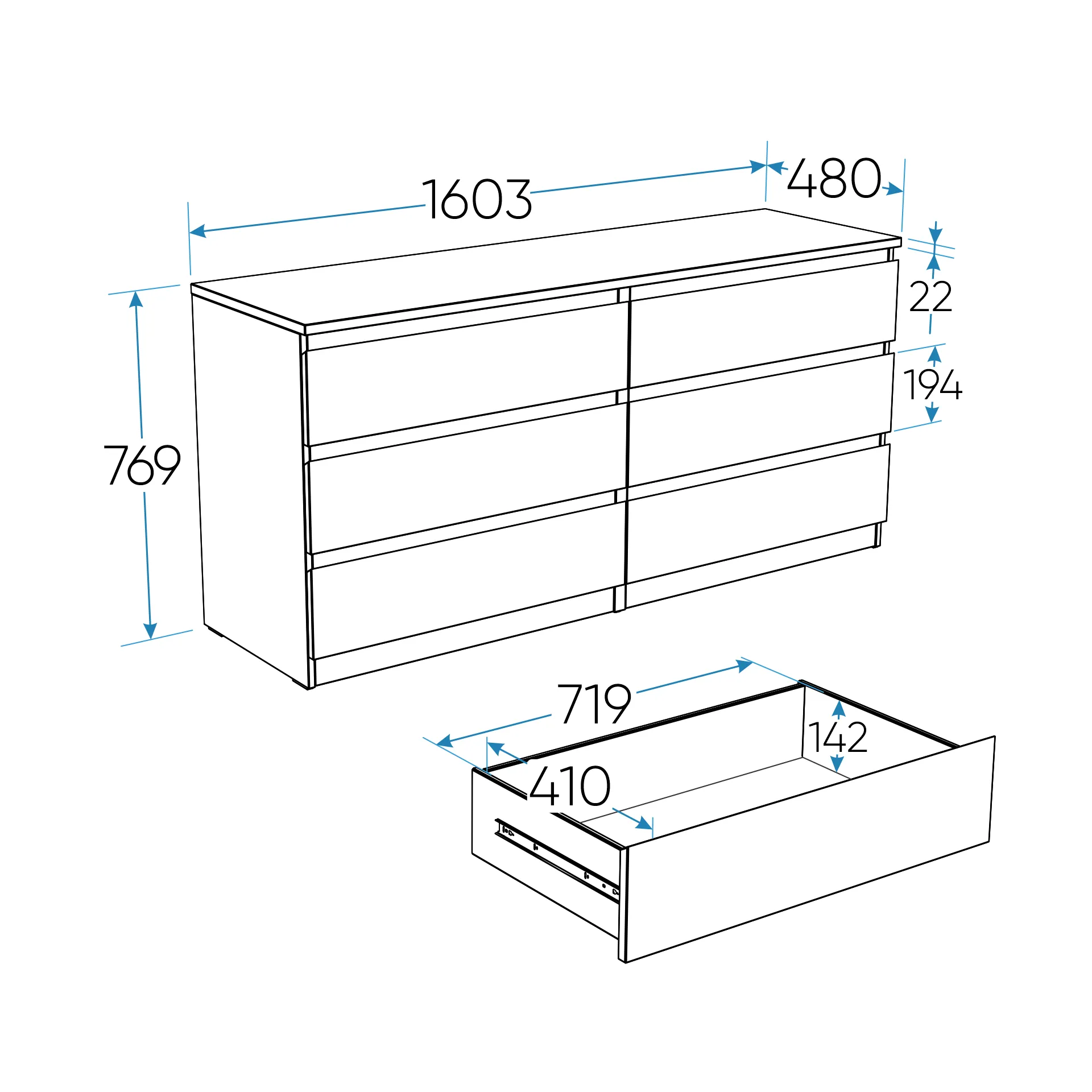 Комод МАЛЬТА с шестью выдвижными ящиками, 1603х480х764, цвет Дуб Венге. Крепится к стене. Гарантийный срок для жилых помещений 24 месяца, для общественных помещений - 18 месяцев.