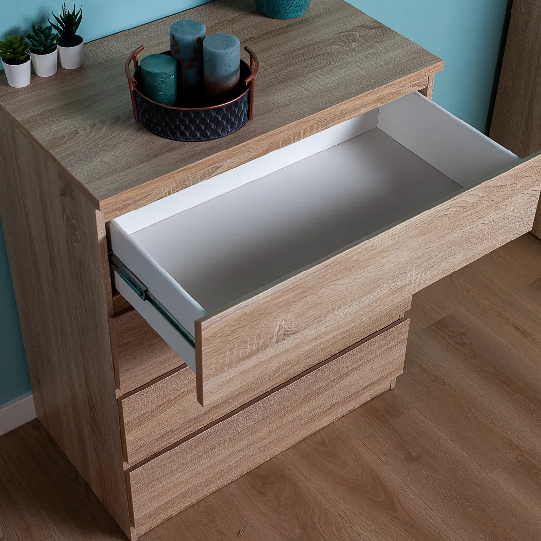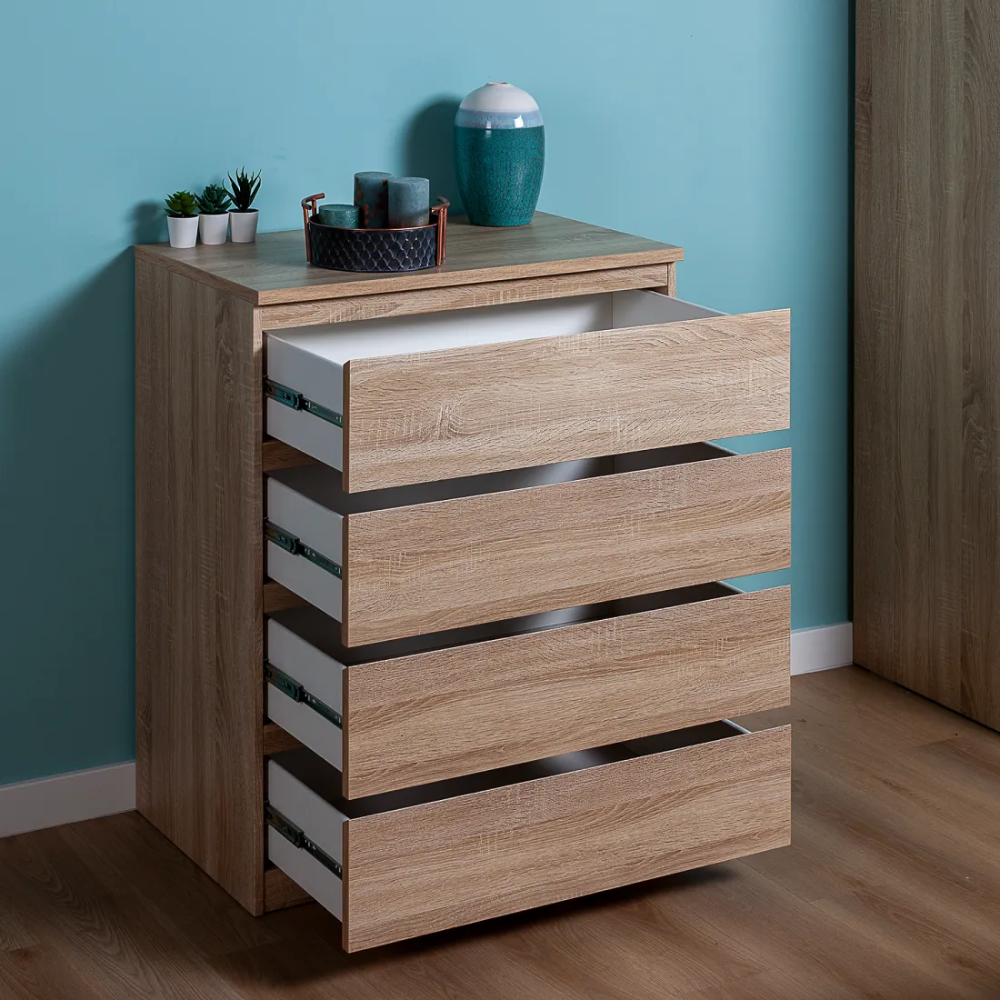 Комод МАЛЬТА с четырьмя выдвижными ящиками, 803х480х988, цвет Дуб Сонома. Крепится к стене. Гарантийный срок для жилых помещений 24 месяца, для общественных помещений - 18 месяцев.