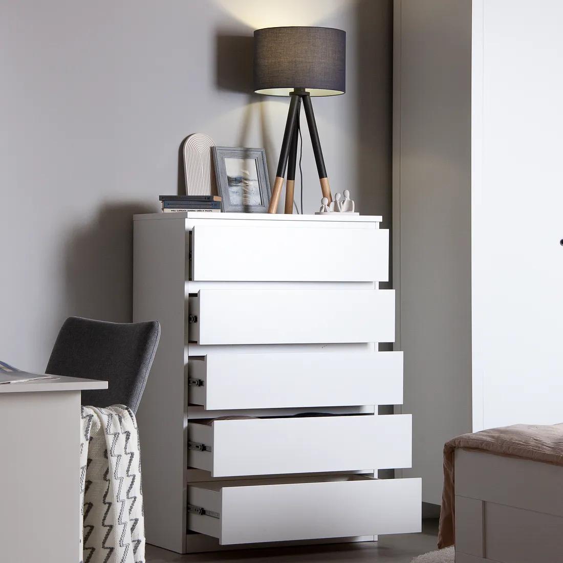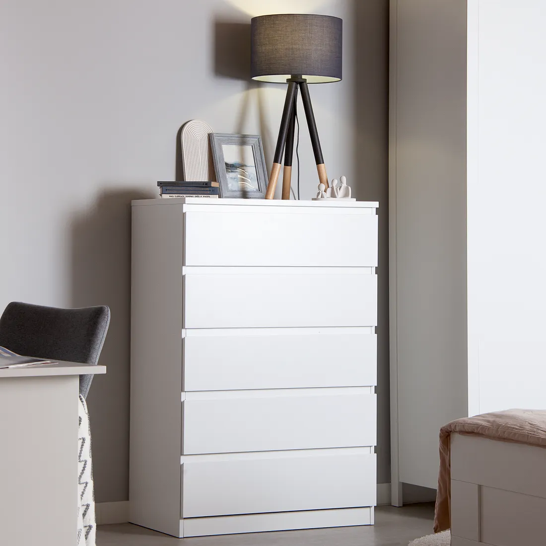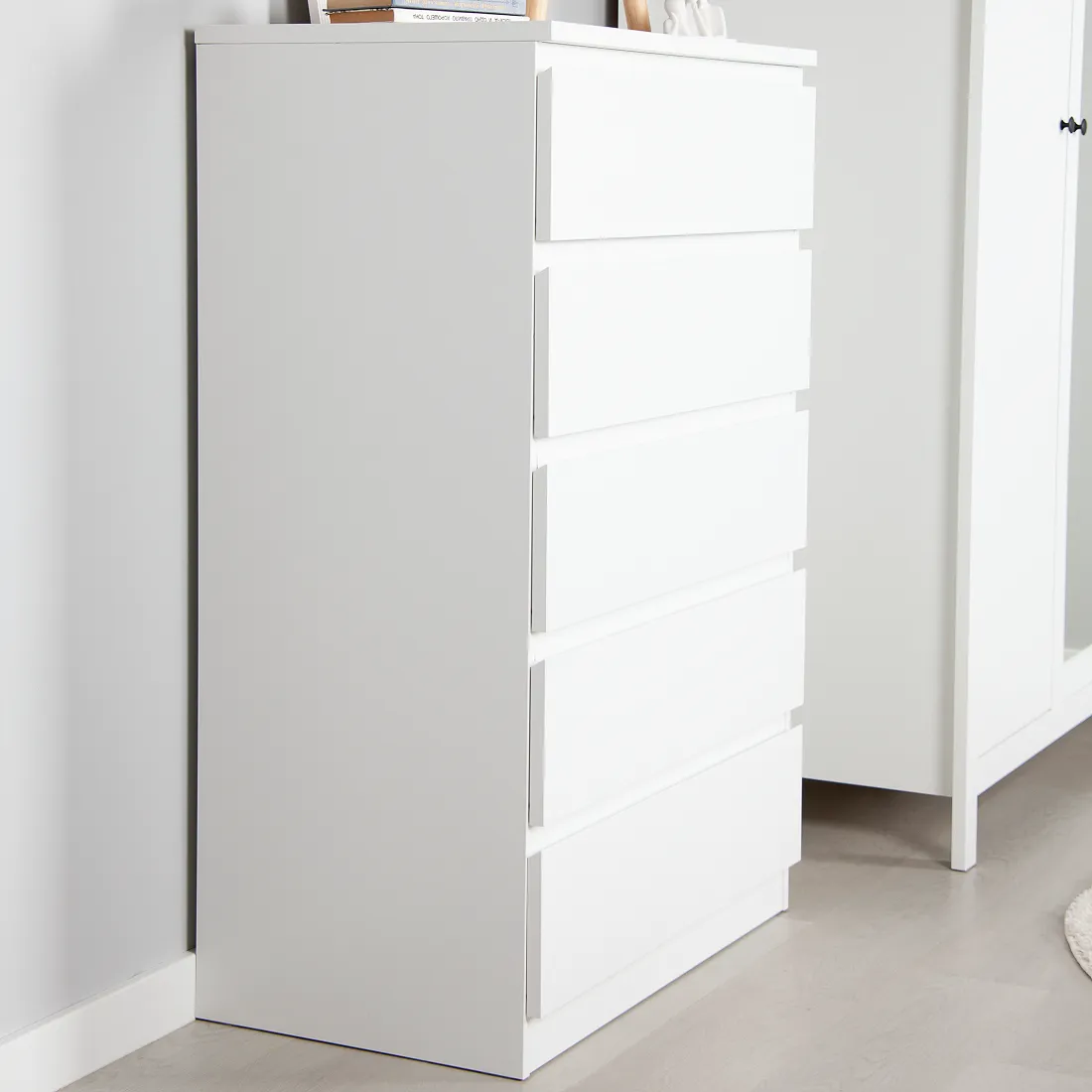 Комод МАЛЬТА с пятью выдвижными ящиками, 803х480х1212, цвет Белый. Крепится к стене. Гарантийный срок для жилых помещений 24 месяца, для общественных помещений - 18 месяцев.