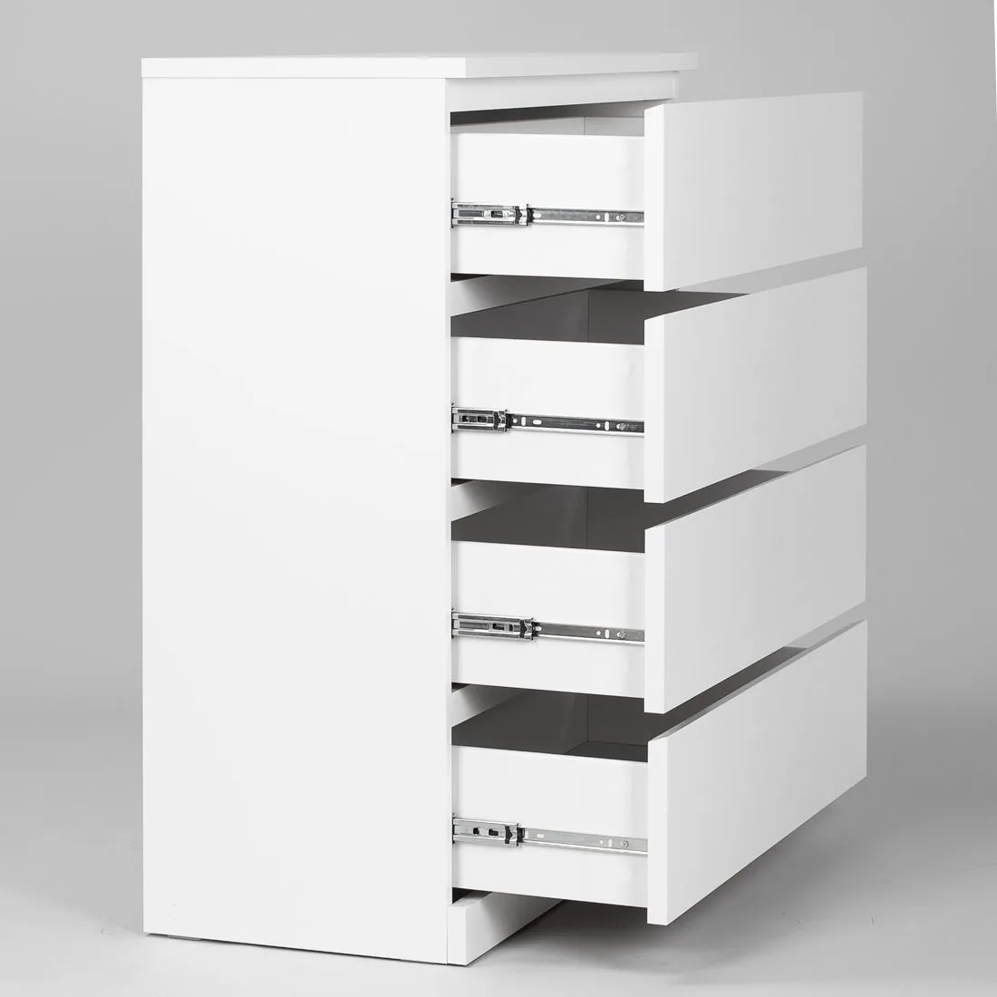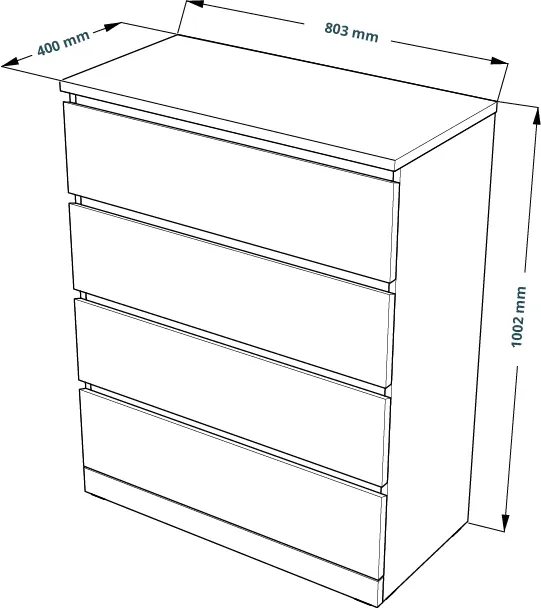Комод Варма 4, 803х400х1002, цвет Белый. Стильный удобный комод с четырьмя выдвижными ящиками. Прекрасно дополнит интерьер и теплую уютную домашнюю атмосферу. Хорошие параметры функциональности (качественные телескопические направляющие, вместительность, удобство использования). Поверхность окрашена экологически безопасными материалами, продолжительное время сохраняет внешний вид. Отлично сочетается в интерьере со стеллажами и полками Фора, журнальными столиками и ТВ-тумбами Энкель, стеллажами Варма. Доступен к заказу не только в белом цвете, но и с покрытием натуральным шпоном (беленый дуб, черный). Преимущества: эстетичный внешний вид; вместительность; простая сборка; экологичность и высокое качество окраски (экологически безопасные материалы); высококачественные телескопические направляющие (мягкое открывание). Крепежные элементы (дюбель-гвозди) приобретаются Покупателем дополнительно в зависимости от материала стены. Гарантийный срок для жилых и общественных помещений 24 месяца.