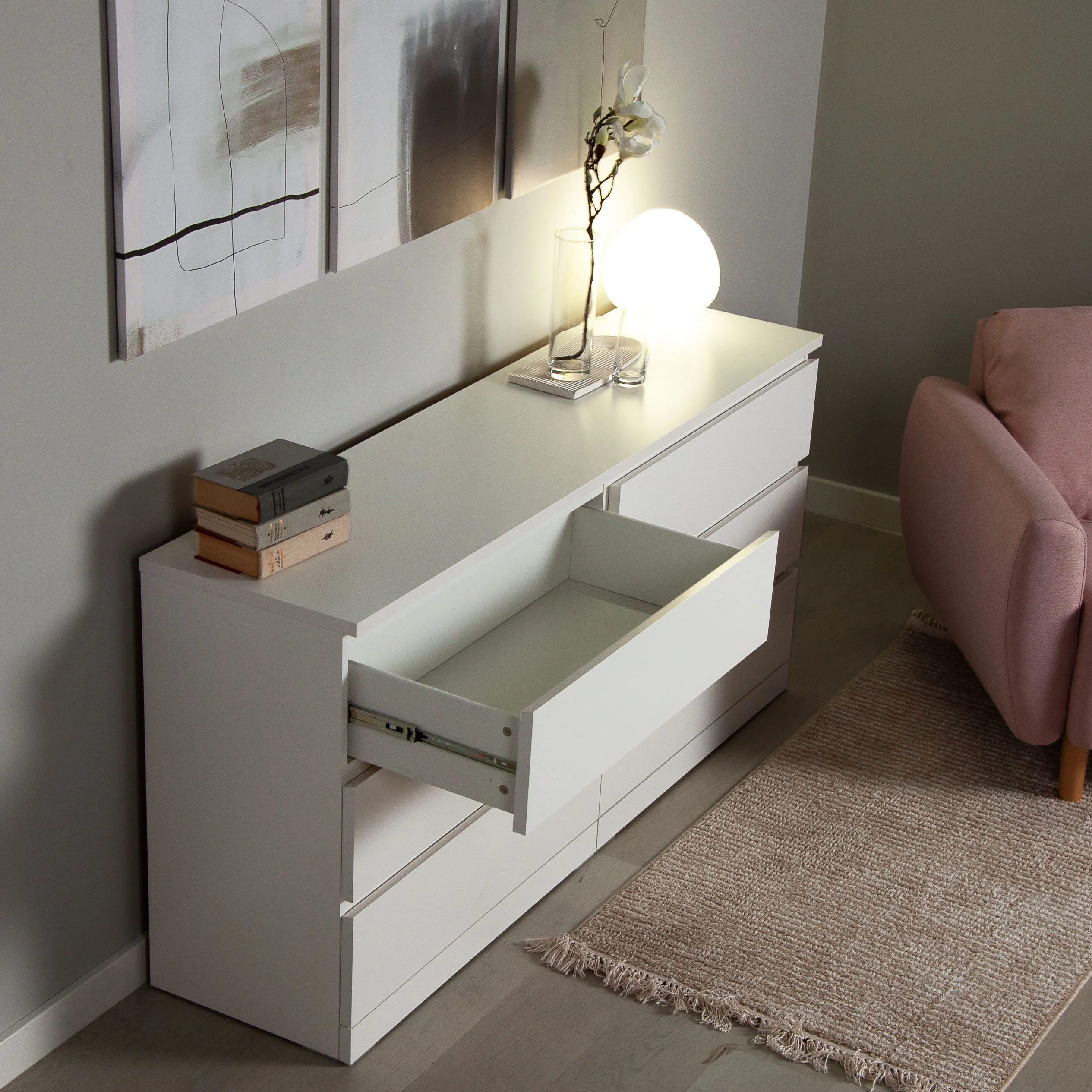 Комод Варма 6Д, 1603х400х775, цвет Белый. Стильный удобный комод с 6 выдвижными ящиками. Прекрасно дополнит интерьер и теплую уютную домашнюю атмосферу. Хорошие параметры функциональности (качественные телескопические направляющие, вместительность, удобство использования). Поверхность окрашена экологически безопасными материалами, продолжительное время сохраняет внешний вид. Может использоваться как для хранения вещей, так и в качестве ТВ-тумбы.