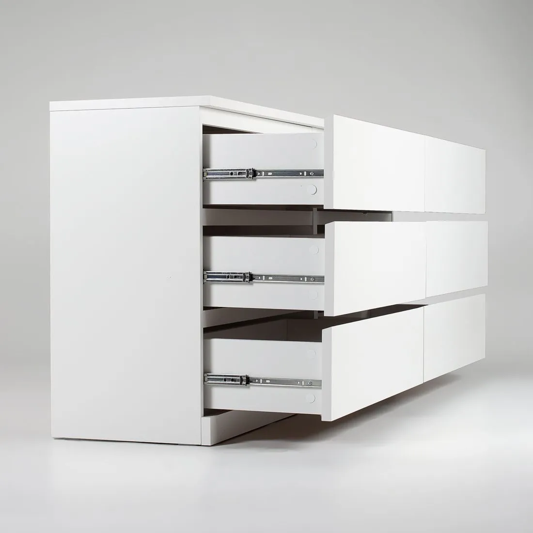 Отлично сочетается в интерьере со стеллажами и полками Фора, журнальными столиками и ТВ-тумбами Энкель, стеллажами Варма. Доступен к заказу не только в белом цвете, но и с покрытием натуральным шпоном (беленый дуб, черный). Преимущества: эстетичный внешний вид; вместительность (ширина 1600 мм, высота 780 мм); простая сборка; экологичность и высокое качество окраски (экологически безопасные материалы); высококачественные телескопические направляющие (мягкое открывание).