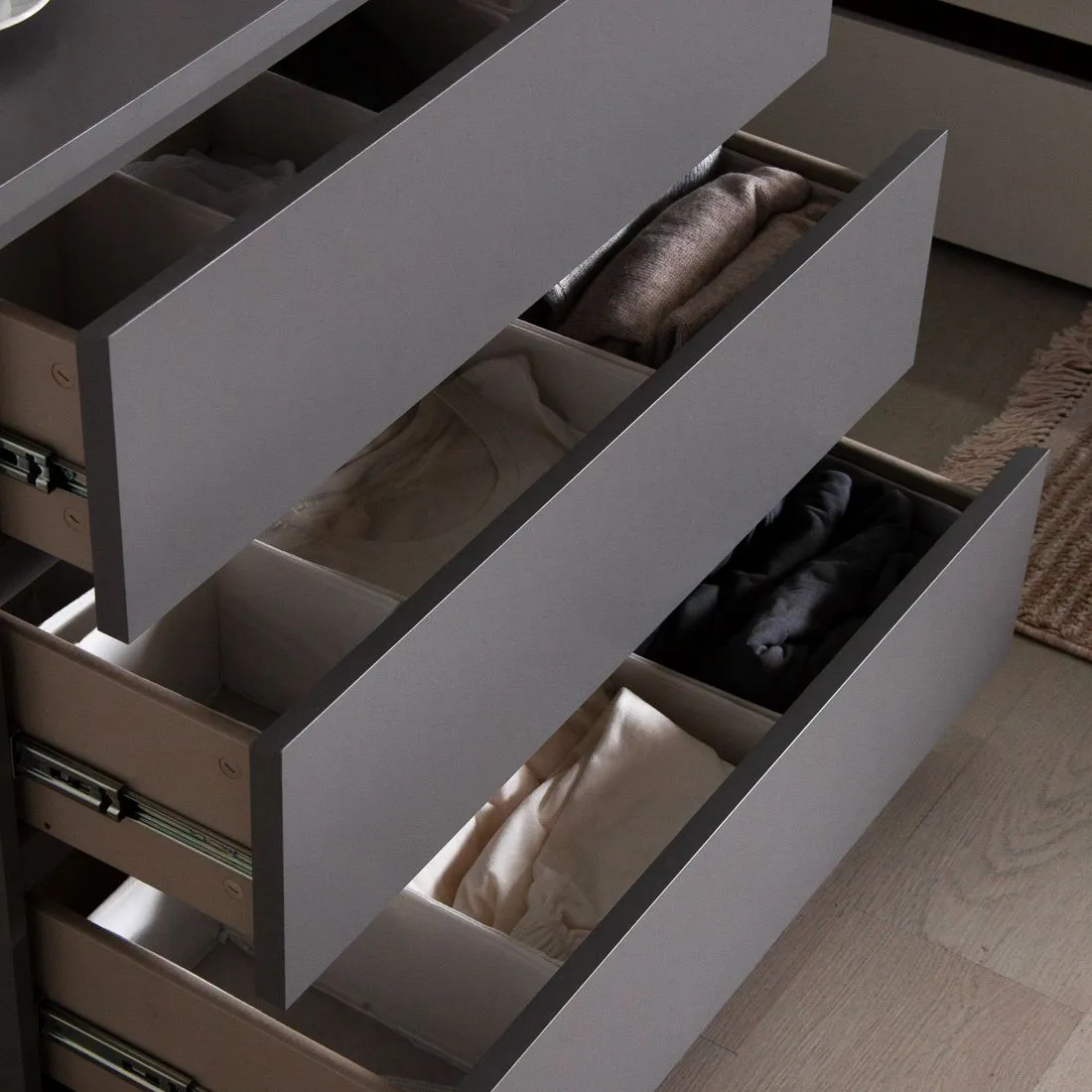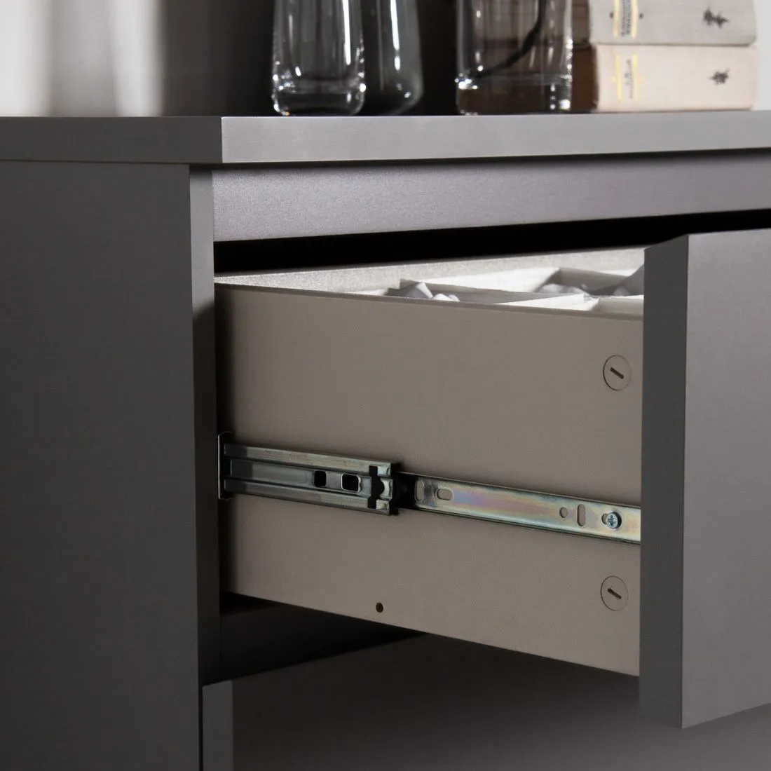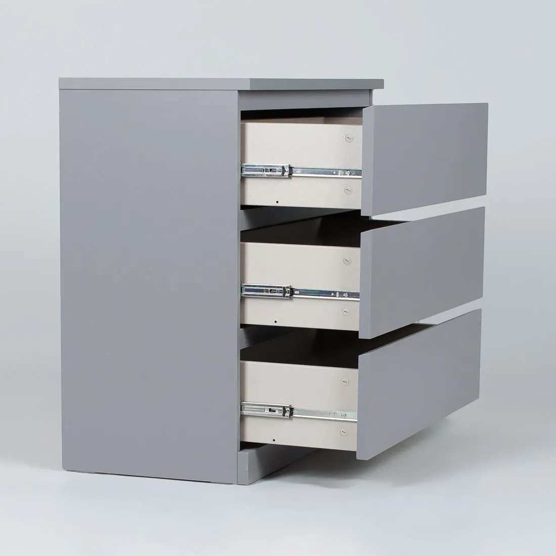 Комод Варма 3, 803х400х775, цвет Серый. Стильный удобный комод с тремя выдвижными ящиками.  Прекрасно дополнит интерьер и теплую уютную домашнюю атмосферу. Хорошие параметры функциональности (качественные телескопические направляющие, вместительность, удобство использования). Поверхность окрашена экологически безопасными материалами, продолжительное время сохраняет внешний вид. Отлично сочетается в интерьере со стеллажами и полками Фора, журнальными столиками и ТВ-тумбами Энкель, стеллажами Варма. Доступен к заказу не только в сером цвете, но и в белом, и с покрытием натуральным шпоном (беленый дуб, черный). Преимущества: эстетичный внешний вид; вместительность; простая сборка; экологичность и высокое качество окраски (экологически безопасные материалы); высококачественные телескопические направляющие (мягкое открывание). Крепежные элементы (дюбель-гвозди) приобретаются Покупателем дополнительно в зависимости от материала стены. Гарантийный срок для жилых и общественных помещений 24 месяца.