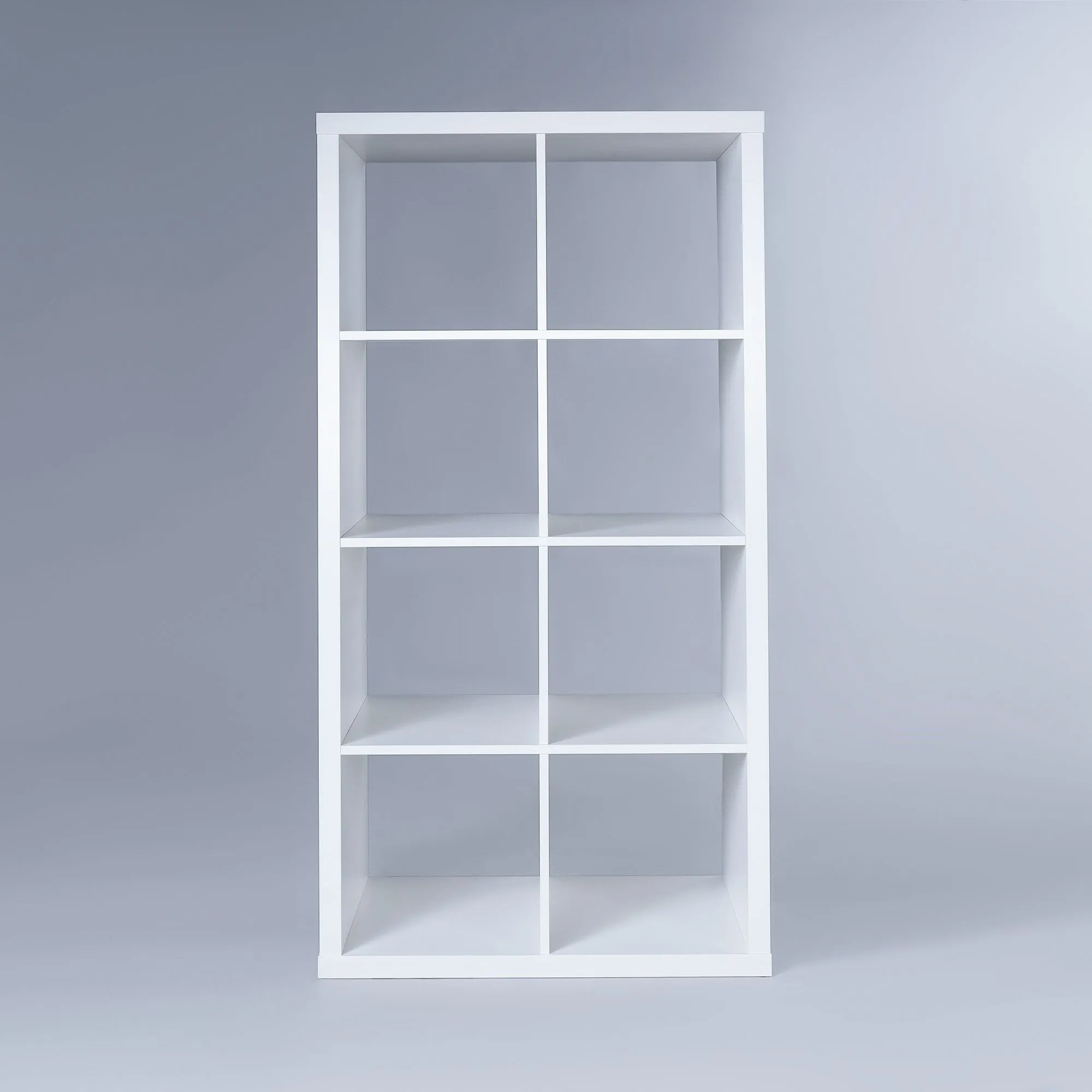 Стеллаж Фора 8, прямоуголной формы с двумя рядами открытых ячеек в количестве восьми штук, 764х380х1467, цвет Белый.  В зависимости от условий использования, легко может стать стильной навесной удобной полкой с тремя ячейками. В сочетании с аксессуарами (полка Фора 4.1, комплект выдвижных ящиков Фора 4.2, дверца Фора 4.3) приобретает дополнительную функциональность и меняет визуальное восприятие. Конструкция рамы - тамбурат (рамка из ДСП и HDF с сотовым заполнением) - популярная современная технология, активно внедряемая крупнейшими производителями для изготовления мебели по скандинавским стандартам. Отлично сочетается в интерьере со стеллажами и полками Фора, журнальными столиками и ТВ-тумбами Энкель, комодами и стеллажами Варма.Преимущества стеллажа, такие, как: облегченная конструкция (тамбурат); высокая прочность; простая сборка; эстетичный внешний вид; возможность установки дополнительных аксессуаров; вртикальная либо горизонтальная установка, - открывают возможность широкого применения стеллажа в интерьере в стиле сканди, минимализм, лофт. Крепежные элементы (дюбель-гвозди) приобретаются Покупателем дополнительно в зависимости от материала стены. Гарантийный срок для жилых и общественных помещений 24 месяца.