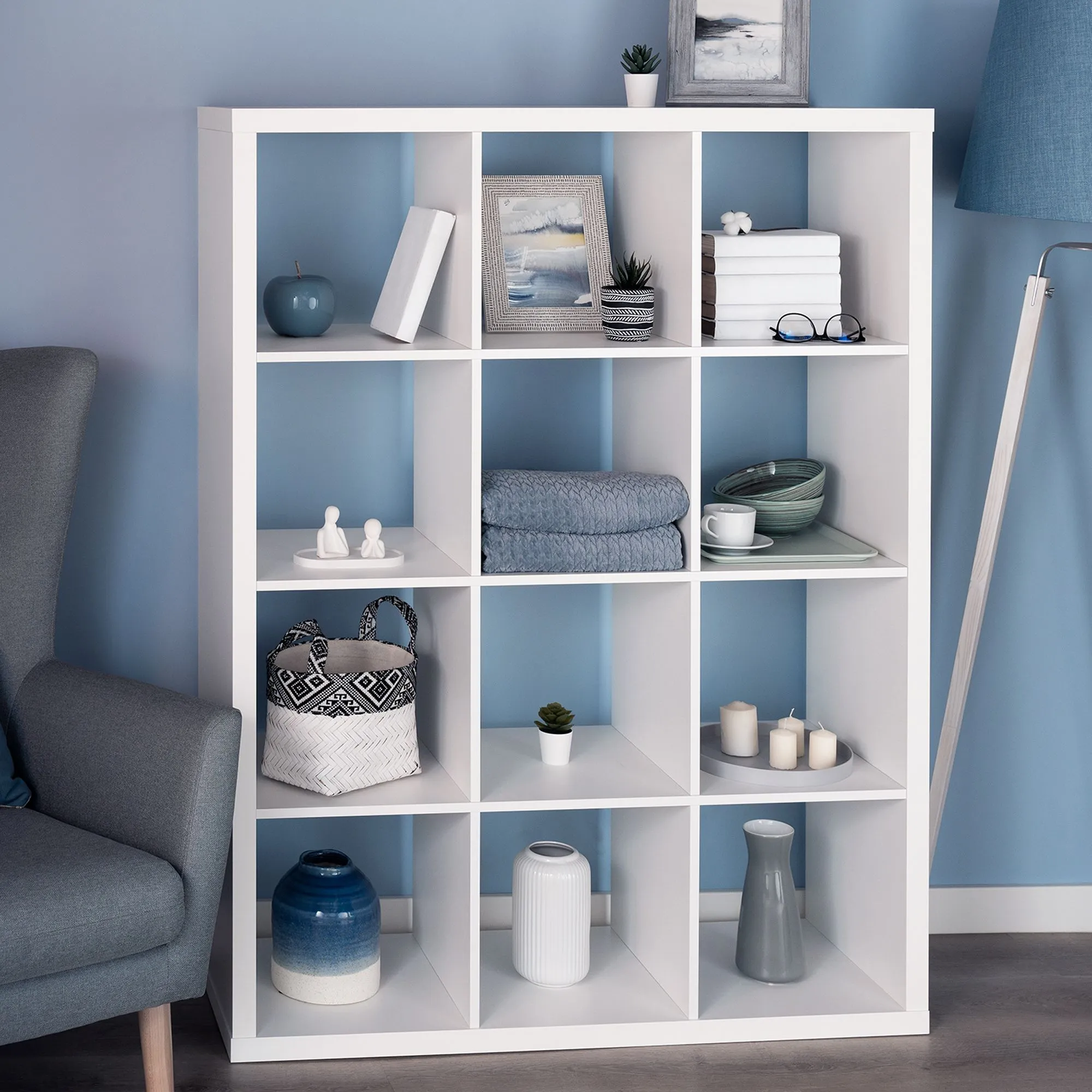 Стеллаж Фора 12, широкий стеллаж с двенадцатью открытыми ячейками, 1116х380х1467, цвет Белый.  В зависимости от условий использования, легко может стать стильной навесной удобной полкой с тремя ячейками. В сочетании с аксессуарами (полка Фора 4.1, комплект выдвижных ящиков Фора 4.2, дверца Фора 4.3) приобретает дополнительную функциональность и меняет визуальное восприятие. Конструкция рамы - тамбурат (рамка из ДСП и HDF с сотовым заполнением) - популярная современная технология, активно внедряемая крупнейшими производителями для изготовления мебели по скандинавским стандартам. Отлично сочетается в интерьере со стеллажами и полками Фора, журнальными столиками и ТВ-тумбами Энкель, комодами и стеллажами Варма.Преимущества стеллажа, такие, как: облегченная конструкция (тамбурат); высокая прочность; простая сборка; эстетичный внешний вид; возможность установки дополнительных аксессуаров; вртикальная либо горизонтальная установка, - открывают возможность широкого применения стеллажа в интерьере в стиле сканди, минимализм, лофт. Крепежные элементы (дюбель-гвозди) приобретаются Покупателем дополнительно в зависимости от материала стены. Гарантийный срок для жилых и общественных помещений 24 месяца.