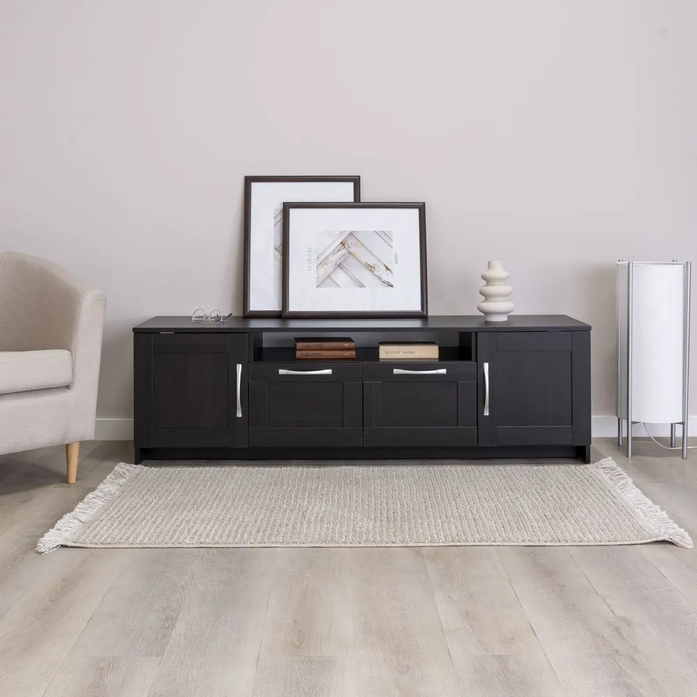 Тумба СИРИУС под телевизор напольная двухдверная с нишей и двумя наружными выдвижными ящиками, 1560х412х471, цвет Дуб Венге. Изготовлена из кашированного ДСП толщиной 16 мм. Крепится к стене. Гарантийный срок для жилых помещений 24 месяца, для общественных помещений - 18 месяцев.