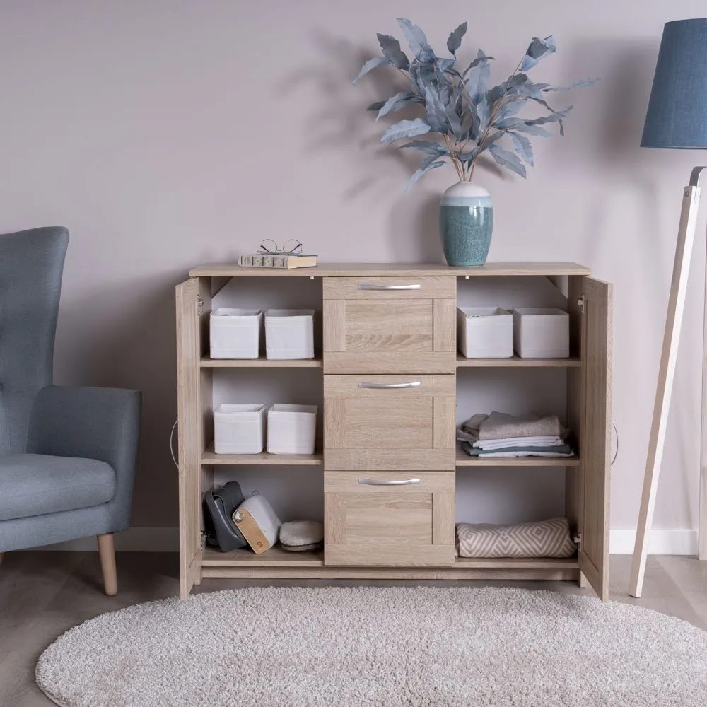 Тумба СИРИУС двухдверная с тремя наружными выдвижными ящиками, 1171х412х946, цвет Дуб Сонома. Изготовлена из кашированного ДСП толщиной 16 мм. Крепится к стене. Гарантийный срок для жилых помещений 24 месяца, для общественных помещений - 18 месяцев.