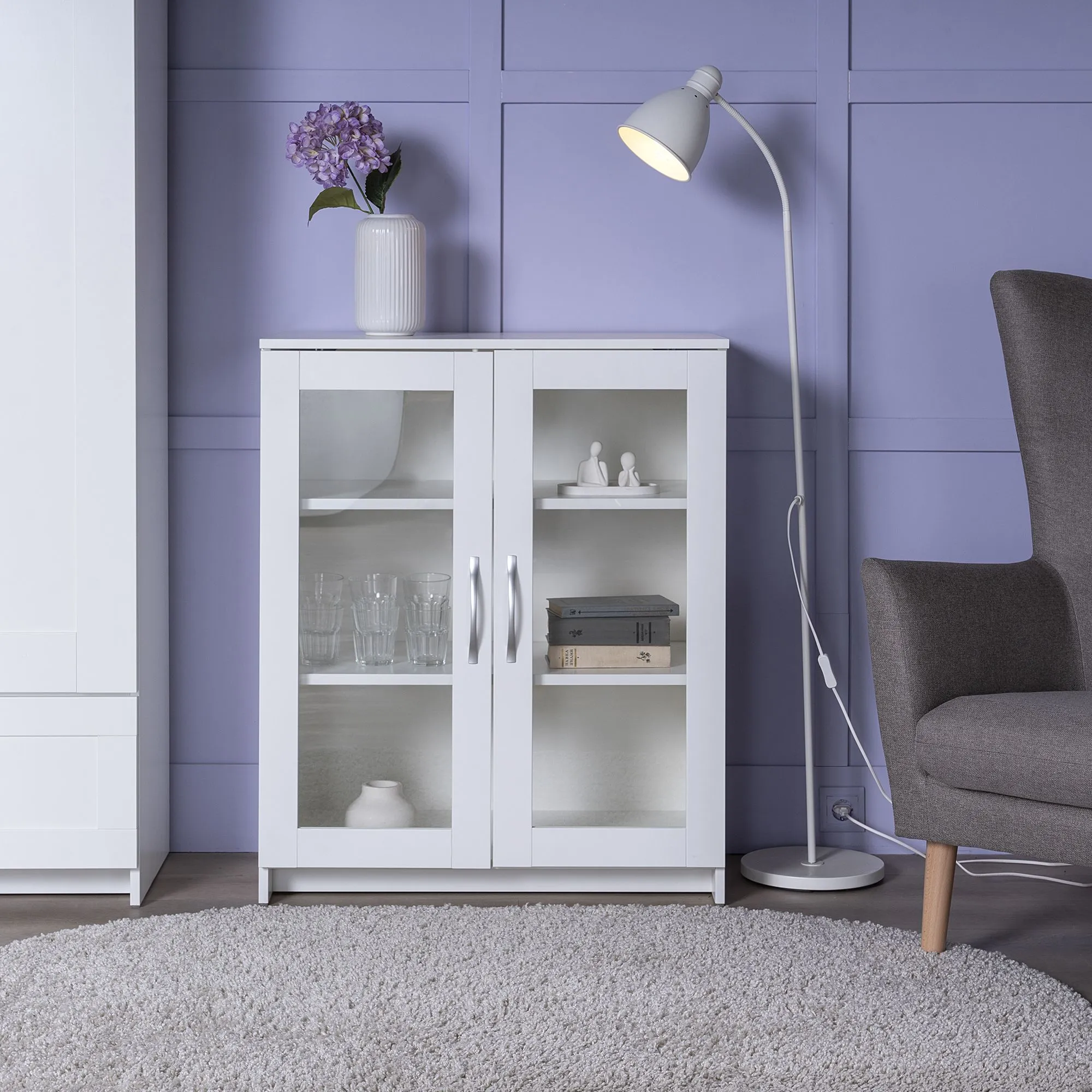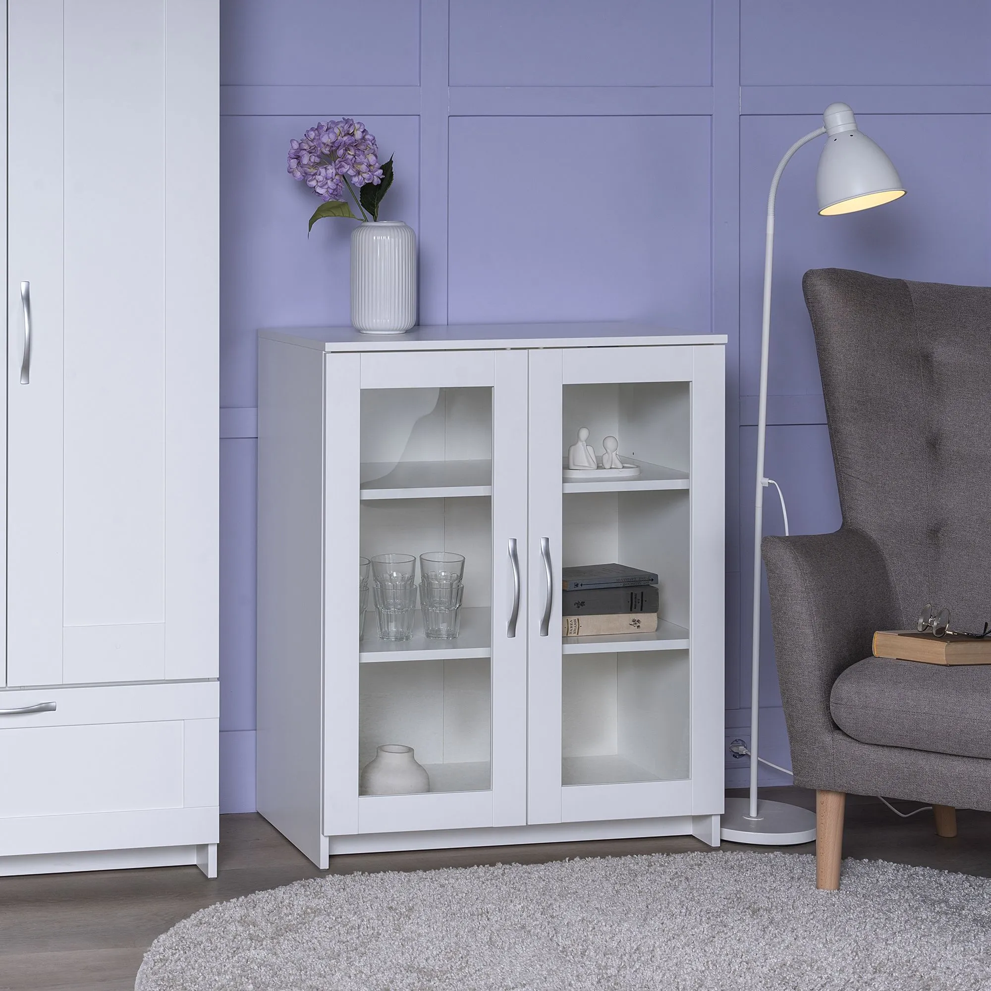 Тумба СИРИУС двухдверная с двумя стеклянными дверьми, 782х412х946, цвет Белый. Изготовлена из кашированного ДСП толщиной 16 мм. Крепится к стене. Гарантийный срок для жилых помещений 24 месяца, для общественных помещений - 18 месяцев.