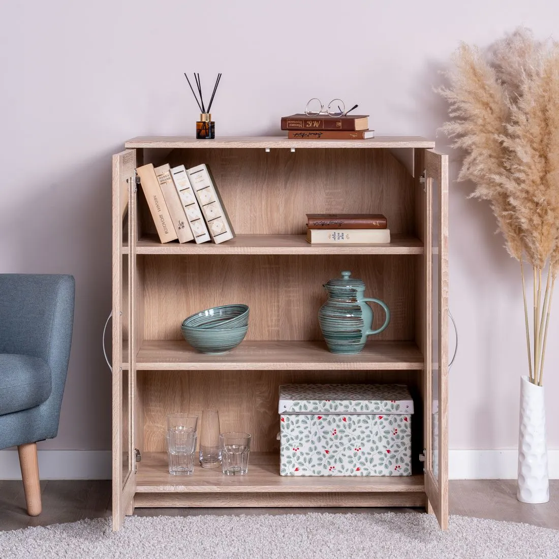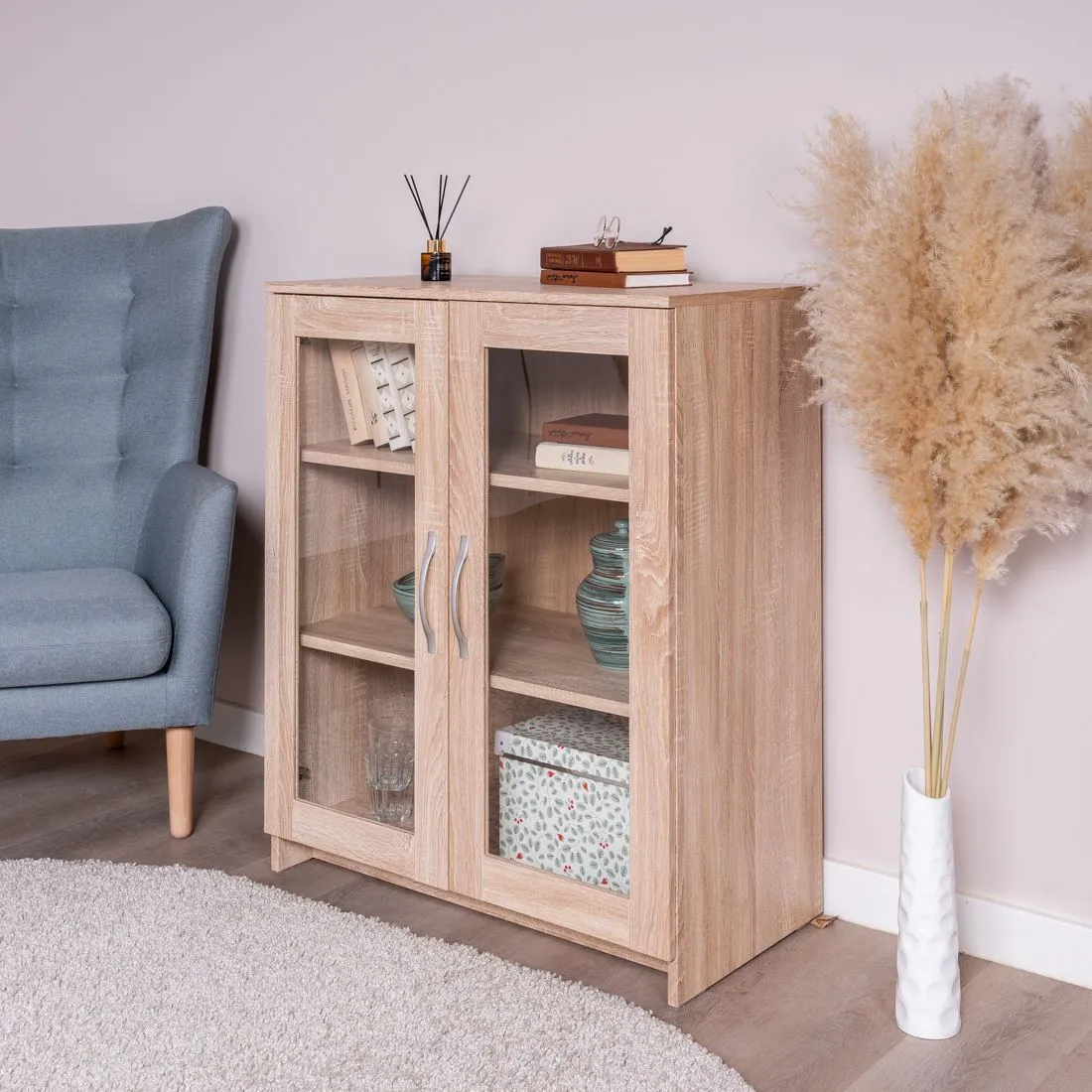 2.02.03.390.3 СИРИУС тумба 2 двери со стеклом 78х123 сонома RU
