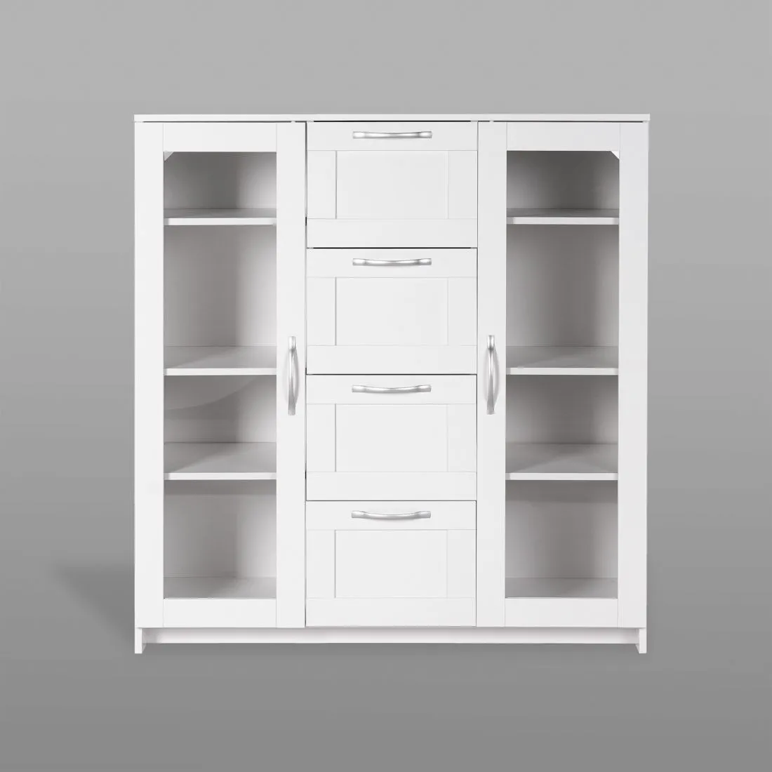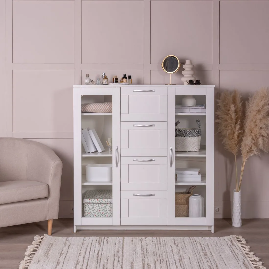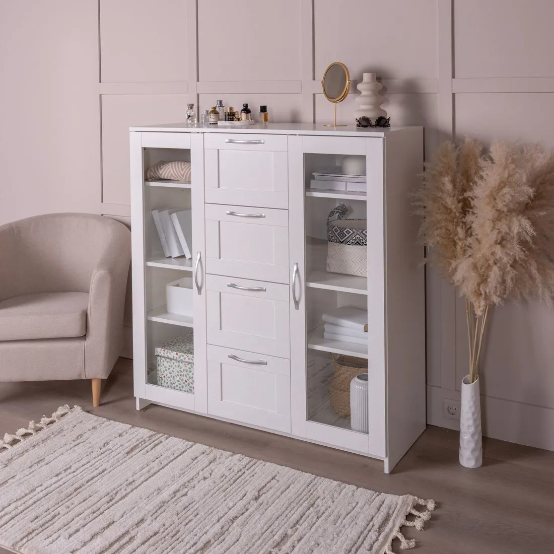2.02.03.400.1 СИРИУС тумба 2 двери со стеклом и 4 ящика 117х123 белая RU