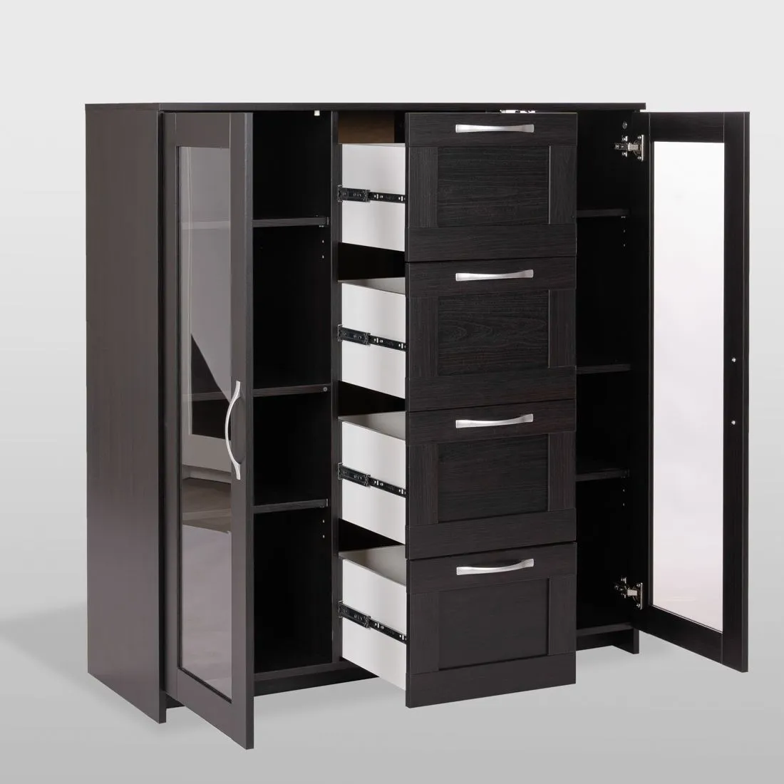 —2.02.03.400.5 СИРИУС тумба 2 двери со стеклом и 4 ящика 117х123 Дуб Венге RU