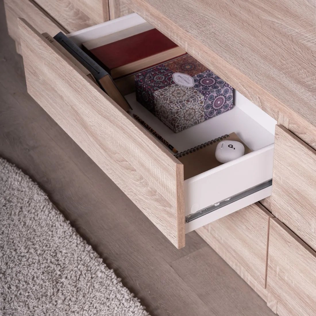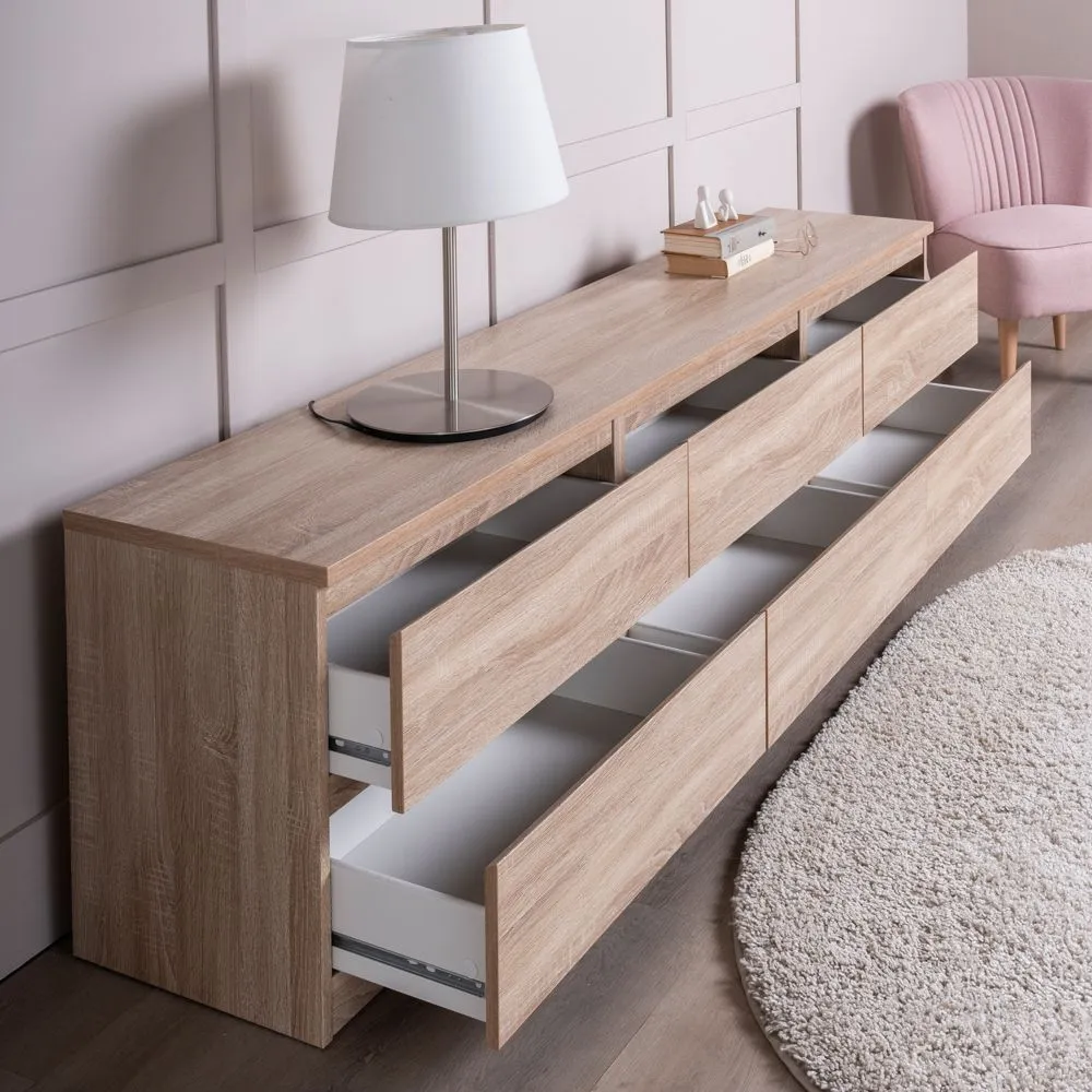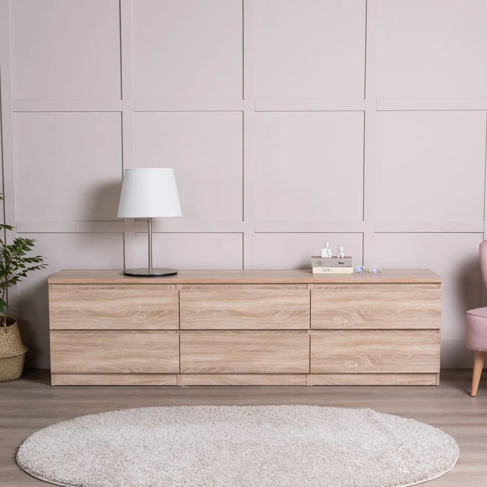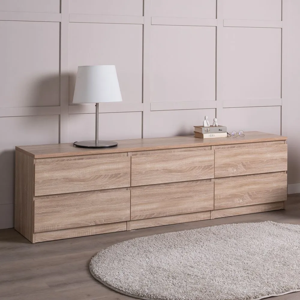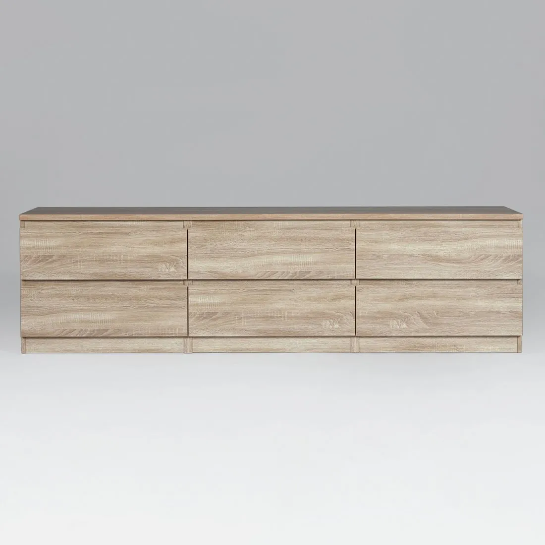 Тумба КАСТОР с шестью наружными выдвижными ящиками, 1944х396х542, цвет Дуб Сонома. Изготовлена из кашированного ДСП толщиной 16 мм. Гарантийный срок для жилых помещений 24 месяца, для общественных помещений - 18 месяцев.