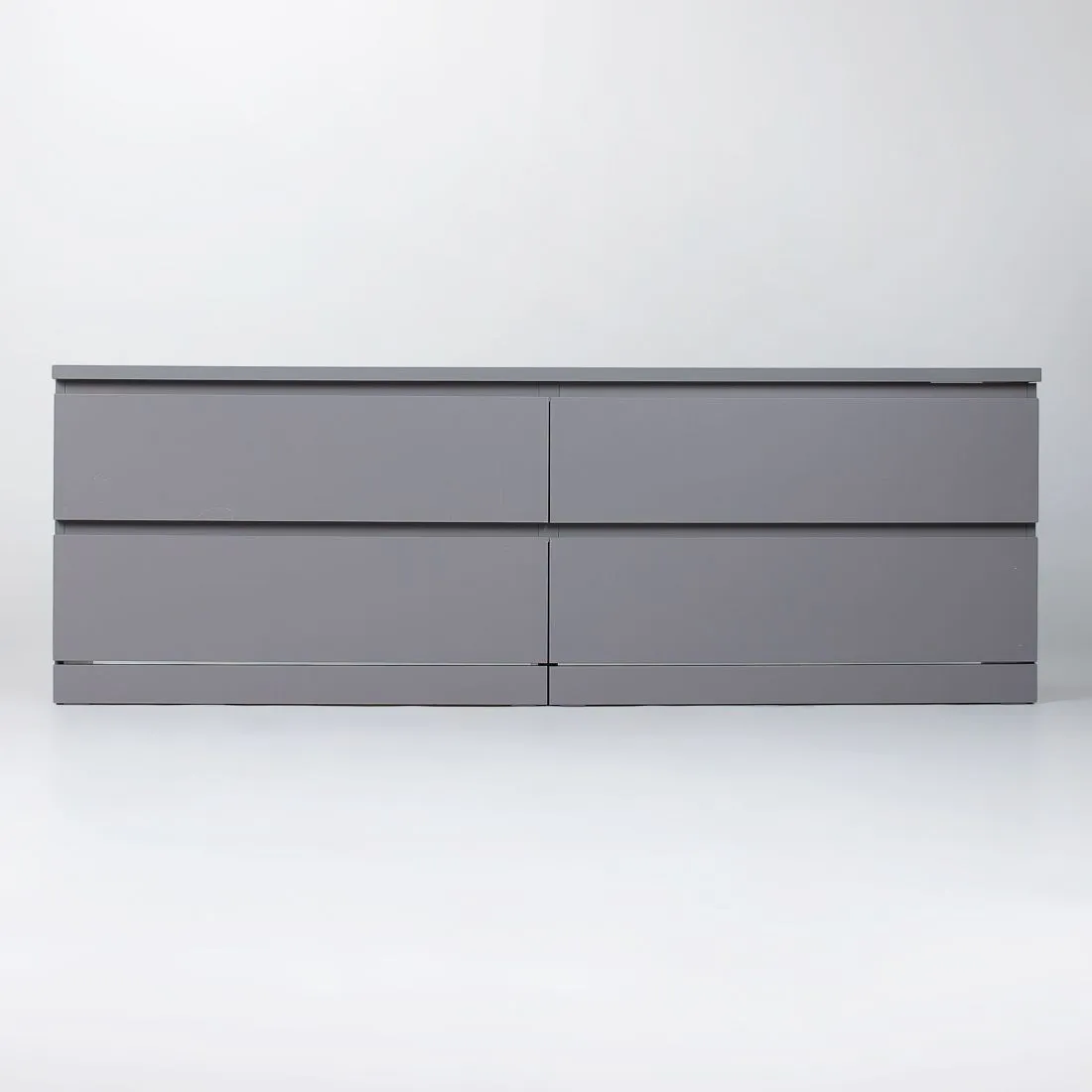Комод Варма 4Д, 1603х400х548, цвет Серый. Стильный удобный комод с 4 выдвижными ящиками. Прекрасно дополнит интерьер и теплую уютную домашнюю атмосферу. Хорошие параметры функциональности (качественные телескопические направляющие, вместительность, удобство использования). Поверхность окрашена экологически безопасными материалами, продолжительное время сохраняет внешний вид. Может использоваться как для хранения вещей, так и в качестве ТВ-тумбы.