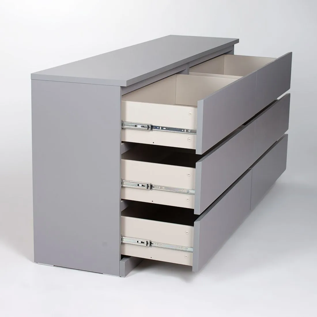 Отлично сочетается в интерьере со стеллажами и полками Фора, журнальными столиками и ТВ-тумбами Энкель, стеллажами Варма. Доступен к заказу не только в сером цвете, но и в белом, и с покрытием натуральным шпоном (беленый дуб, черный). Преимущества: эстетичный внешний вид; вместительность (ширина 1600 мм, высота 780 мм); простая сборка; экологичность и высокое качество окраски (экологически безопасные материалы); высококачественные телескопические направляющие (мягкое открывание).