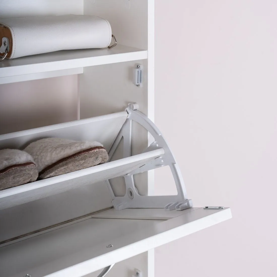 Тумба СИРИУС с нишей и тремя откидными полками для обуви, 602х250х488, цвет Белый. Изготовлена из кашированного ДСП толщиной 16 мм. Крепится к стене. Гарантийный срок для жилых помещений 24 месяца, для общественных помещений - 18 месяцев.