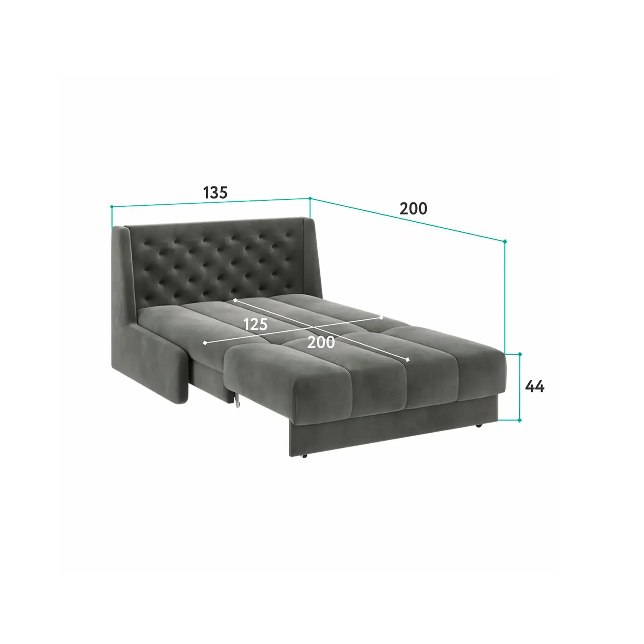 Эстетика дизайна. Высокая спинка с каретной стяжкой делает складную кровать стильной деталью интерьера. А спинка в основной ткани позволяет использовать её для зонирования пространства.