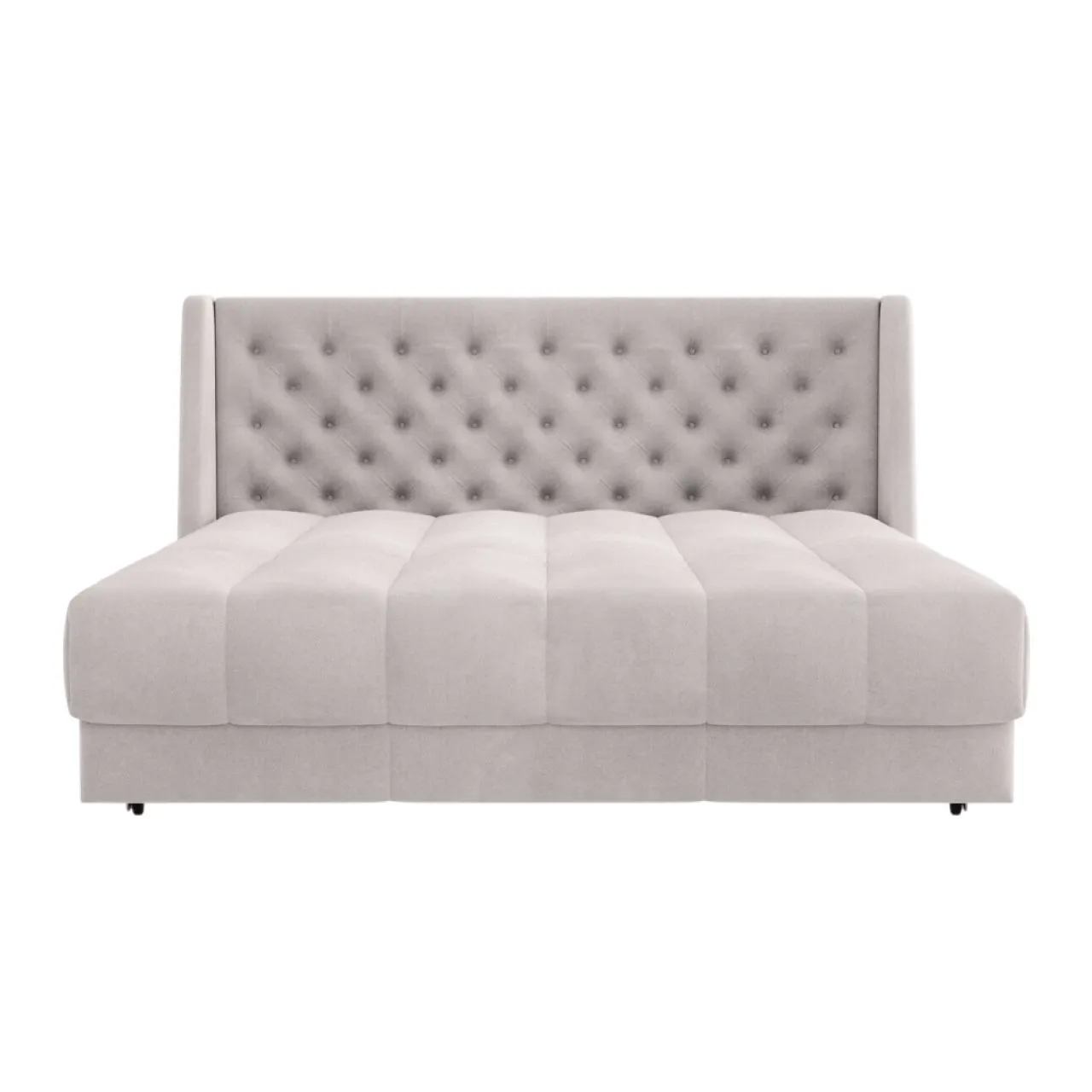 Эстетика дизайна. Высокая спинка с каретной стяжкой делает складную кровать стильной деталью интерьера. А спинка в основной ткани позволяет использовать её для зонирования пространства.