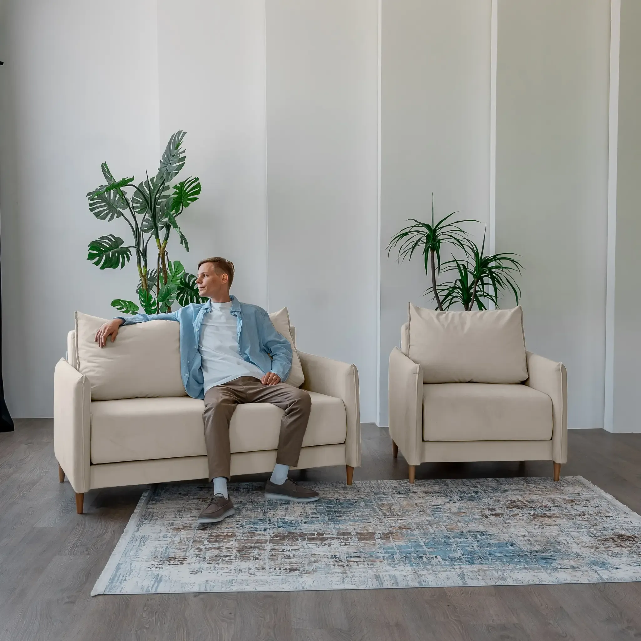 Благодаря минимальным габаритам и лаконичному дизайну, диван Лучший друг - это отличное решение для небольших комнат, детской или кухни.  Почему вам понравится диван «Лучший друг»: Гарантия 18 месяцев: мы уверены в качестве своей продукции.Высокоплотный ППУ 25 кг/м3 не проминается с годами.Обивка велюр Velutto: мягкий бархатистый велюр со слегка матовой фактурой с эффектом легкой чистки.Высокие ножки облегчают уборку под диваном. Диван раскладывается в кровать, которая может стать основным или дополнительным гостевым спальным местом в вашем доме. Характеристики:  Габариты (см): 148х89х87 Спальное место (см): 200х130 Высота посадочного места (см): 47 Высота ножек (см): 12 Короб для белья: Нет Наполнитель: ППУ Каркас: Фанера/ДСП  Фабрика D1 является российским производителем мебели. Мы осуществляем полный производственный цикл всего представленного ассортимента. Все используемые материалы и комплектующие сертифицированы и соответствуют САНПиН. На всю нашу продукцию мы даём гарантию 18 месяцев.