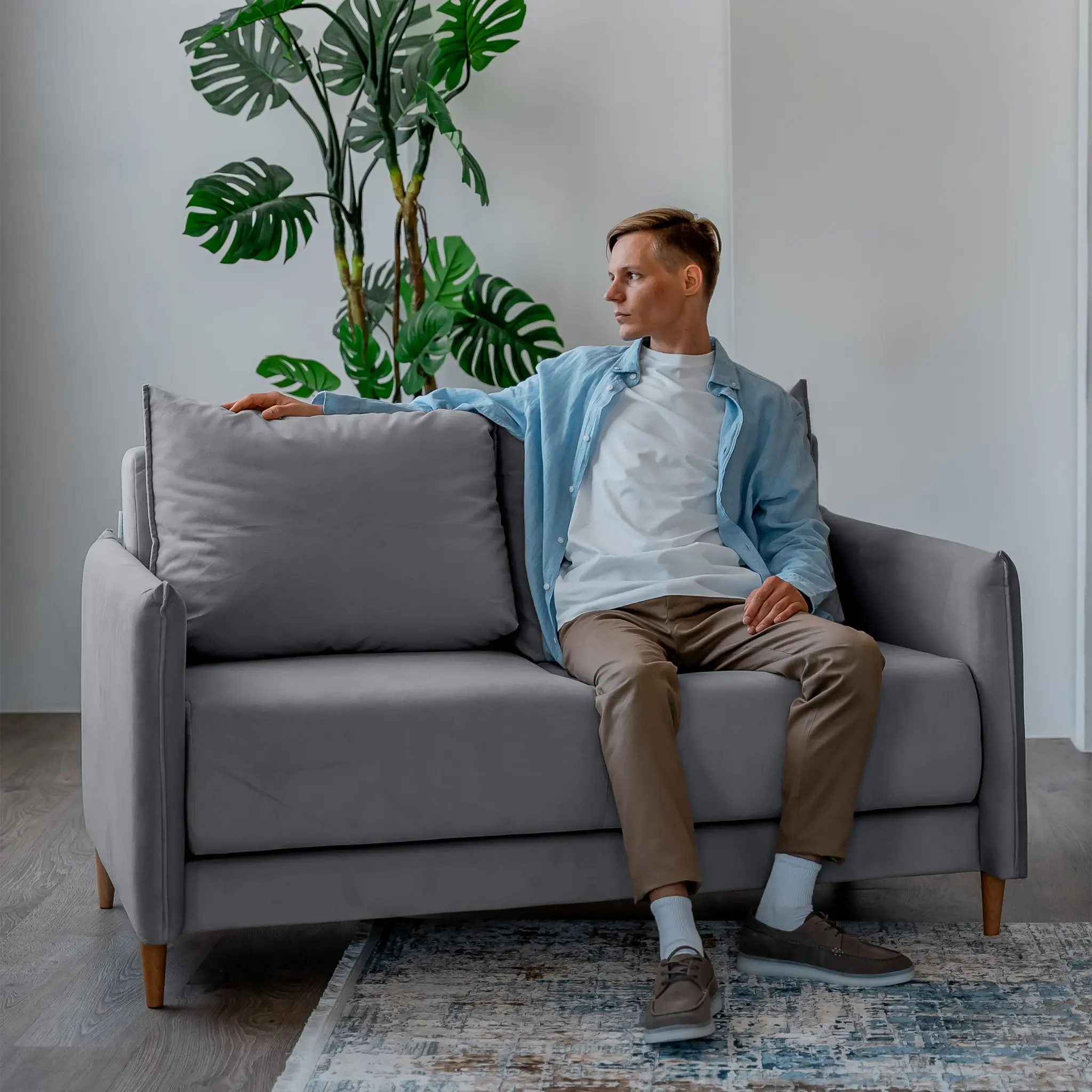 Благодаря минимальным габаритам и лаконичному дизайну, диван Лучший друг - это отличное решение для небольших комнат, детской или кухни.  Почему вам понравится диван «Лучший друг»: Гарантия 18 месяцев: мы уверены в качестве своей продукции.Высокоплотный ППУ 25 кг/м3 не проминается с годами.Обивка велюр Velutto: мягкий бархатистый велюр со слегка матовой фактурой с эффектом легкой чистки.Высокие ножки облегчают уборку под диваном. Диван раскладывается в кровать, которая может стать основным или дополнительным гостевым спальным местом в вашем доме. Характеристики:  Габариты (см): 148х89х87 Спальное место (см): 200х130 Высота посадочного места (см): 47 Высота ножек (см): 12 Короб для белья: Нет Наполнитель: ППУ Каркас: Фанера/ДСП  Фабрика D1 является российским производителем мебели. Мы осуществляем полный производственный цикл всего представленного ассортимента. Все используемые материалы и комплектующие сертифицированы и соответствуют САНПиН. На всю нашу продукцию мы даём гарантию 18 месяцев.