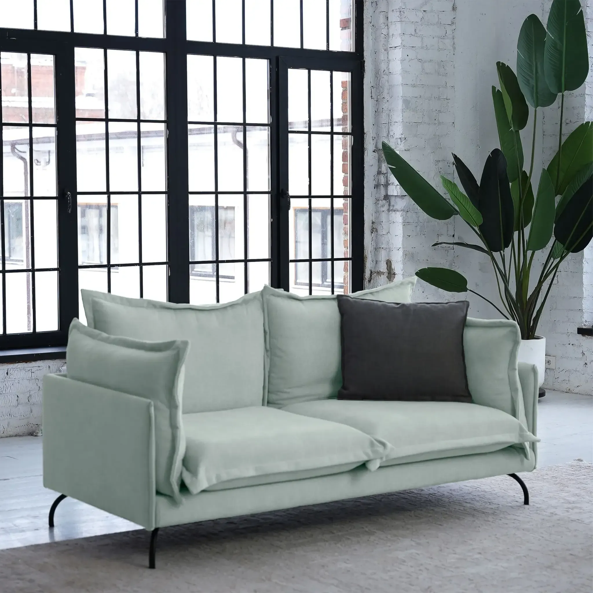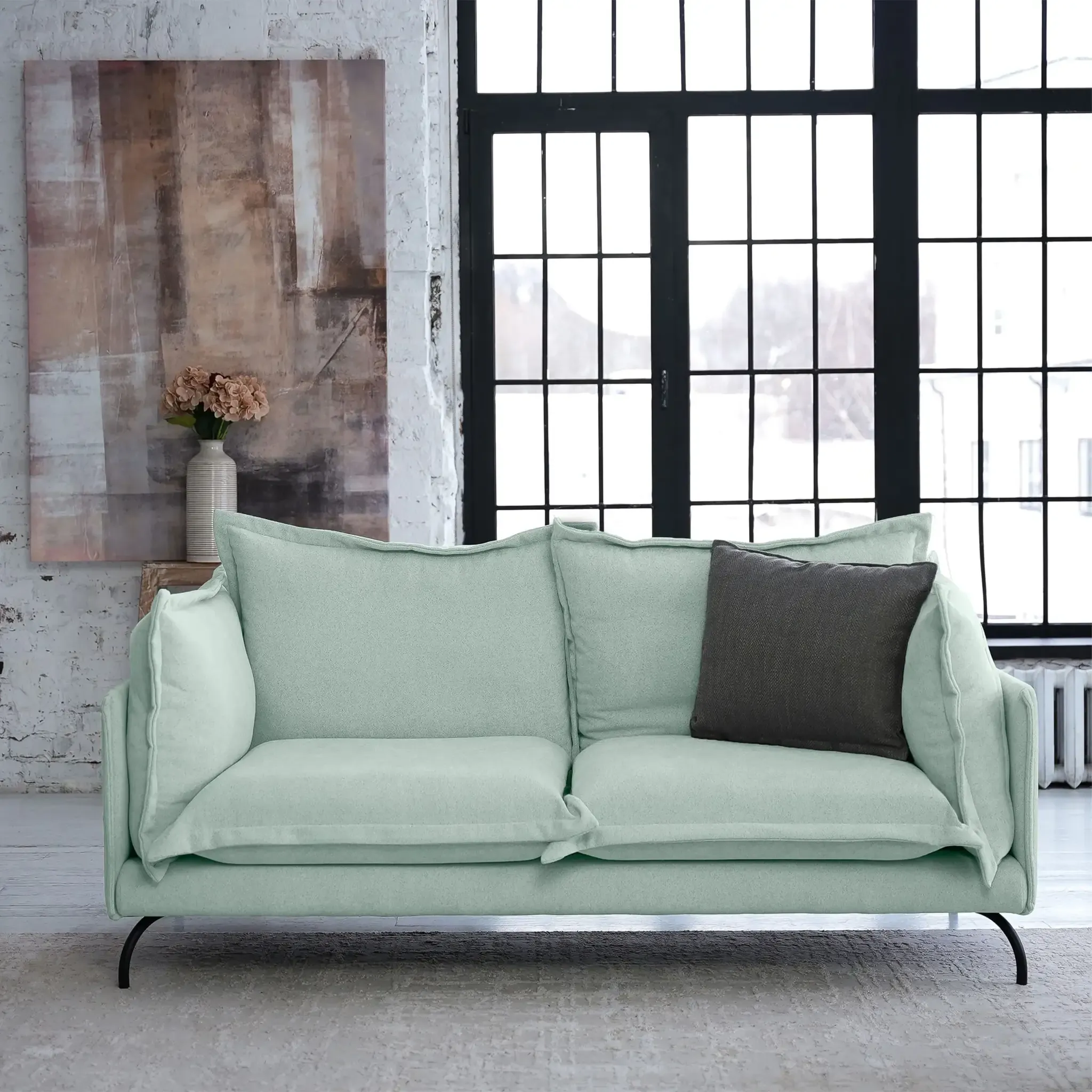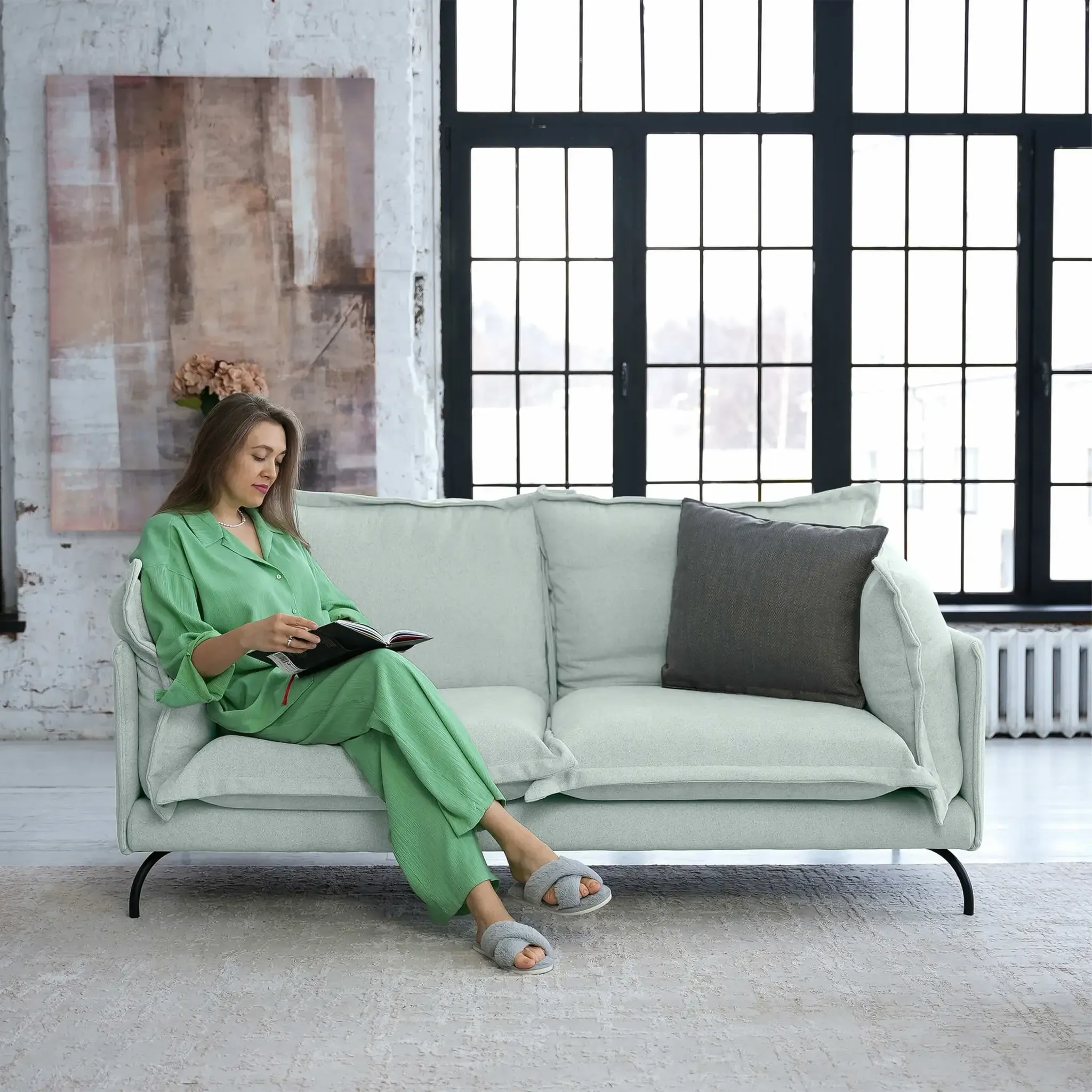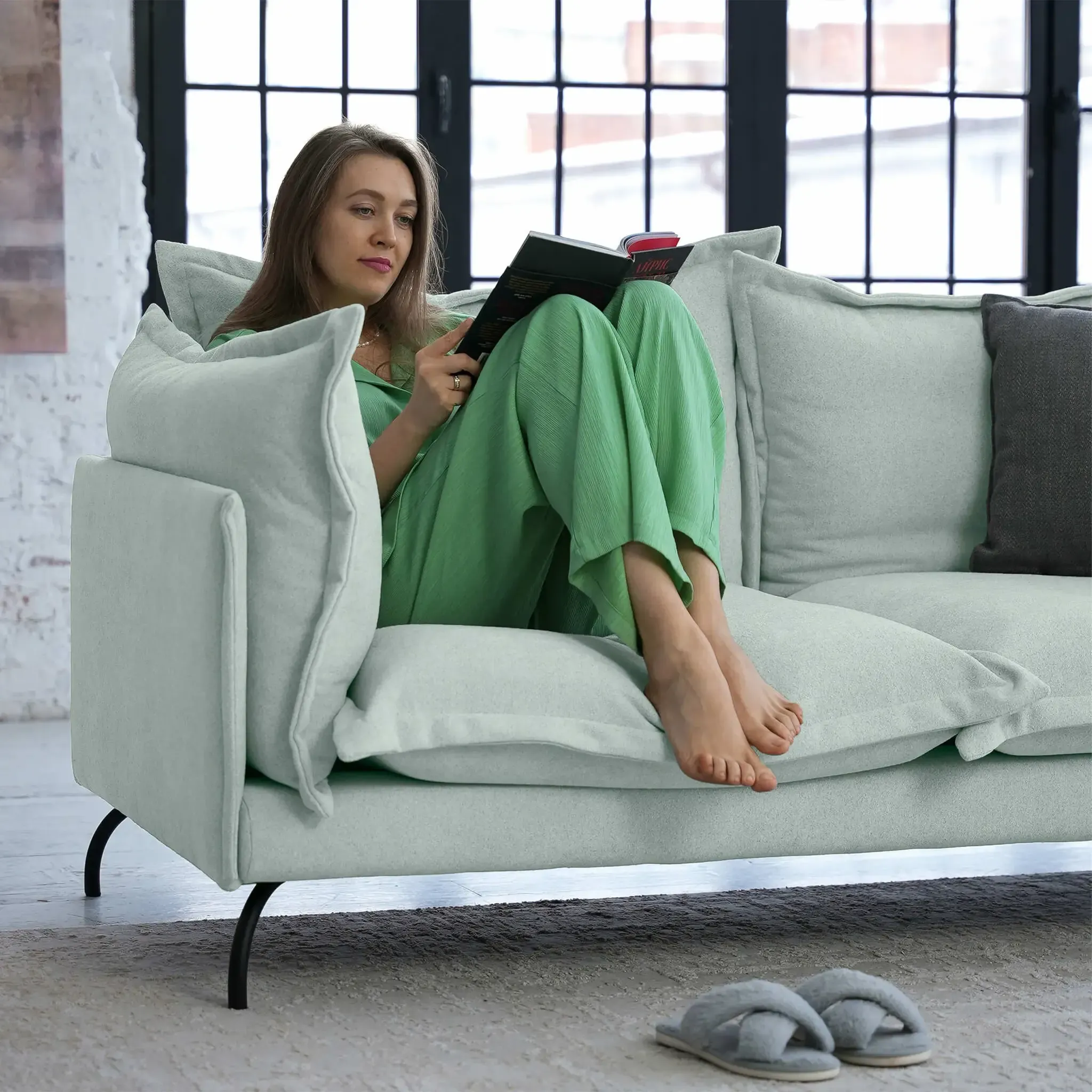 Воздушные формы прямого дивана «Облако комфорта» создают расслабленную атмосферу и обеспечивают максимальный комфорт и расслабление.  Почему вам понравится диван «Облако комфорта»: Гарантия 18 месяцев: мы уверены в качестве своей продукции.Внутри дивана находится гипоаллергенный высокоэластичный наполнитель «Аселекс», который сохраняет заданную форму годами.Обивка Clarins: тактильно теплая и деликатная ткань с фактурой букле.Высокие ножки облегчают уборку под диваном. Диван «Облако комфорта» входит в премиальную линейку интерьерной мебели D1 и может быть выполнен в любой ткани на ваш выбор. Характеристики  Габариты: 193x88x61 см Высота сиденья: 46 см Максимальная нагрузка: 220 кг Нераскладной интерьерный диван Возможность выбора обивки Прочный каркас из высококачественной фанеры  Фабрика D1 является российским производителем мебели. Мы осуществляем полный производственный цикл всего представленного ассортимента. Все используемые материалы и комплектующие сертифицированы и соответствуют САНПиН. На всю нашу продукцию мы даём гарантию 18 месяцев.