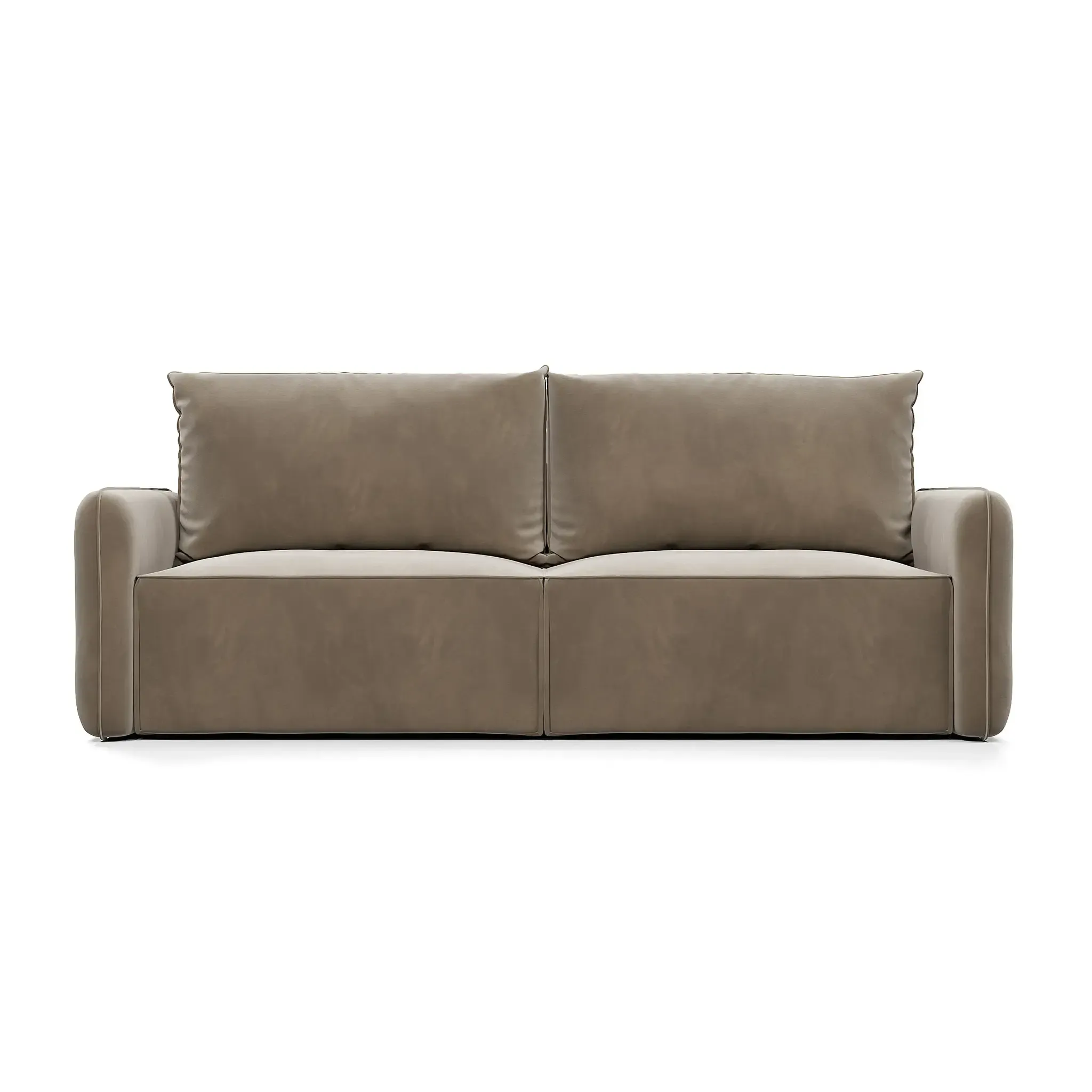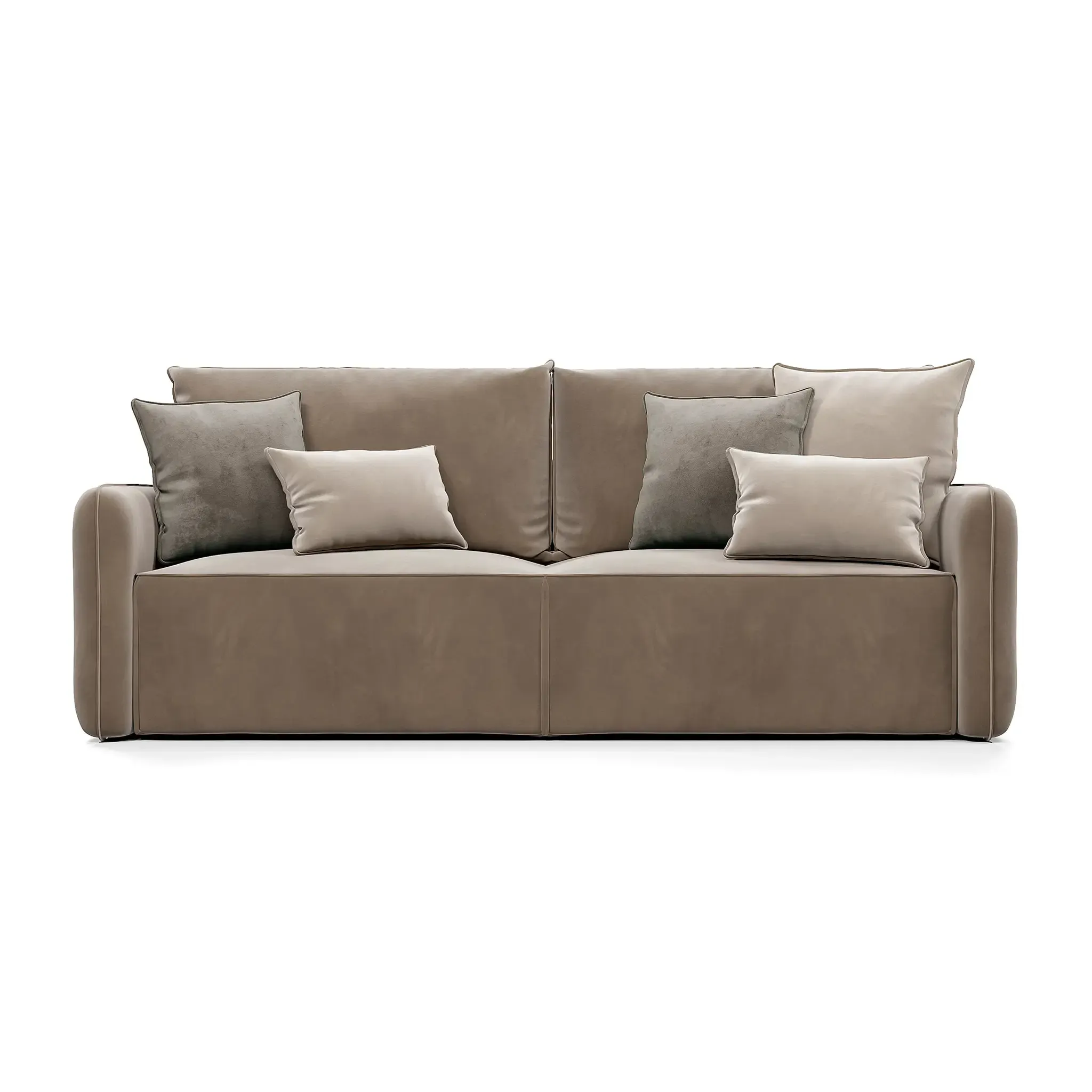 Обивка дивана - мягкий бархатистый премиальный велюр. Тонкая динамика узора обивки создаёт в пространстве ощущение лёгкости и движения.