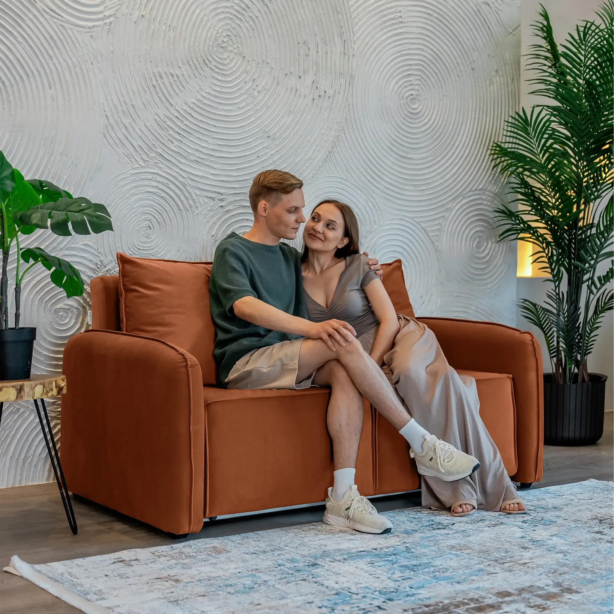 НОВЫЕ ЭМОЦИИ Диван прямой, терракотовый, банкетка слева