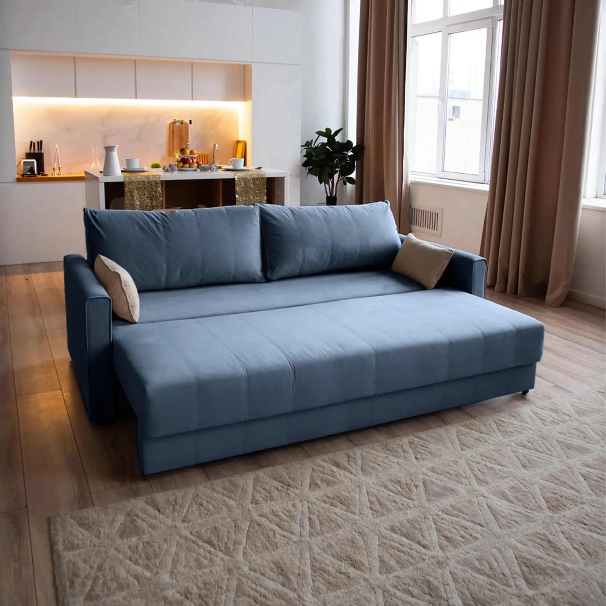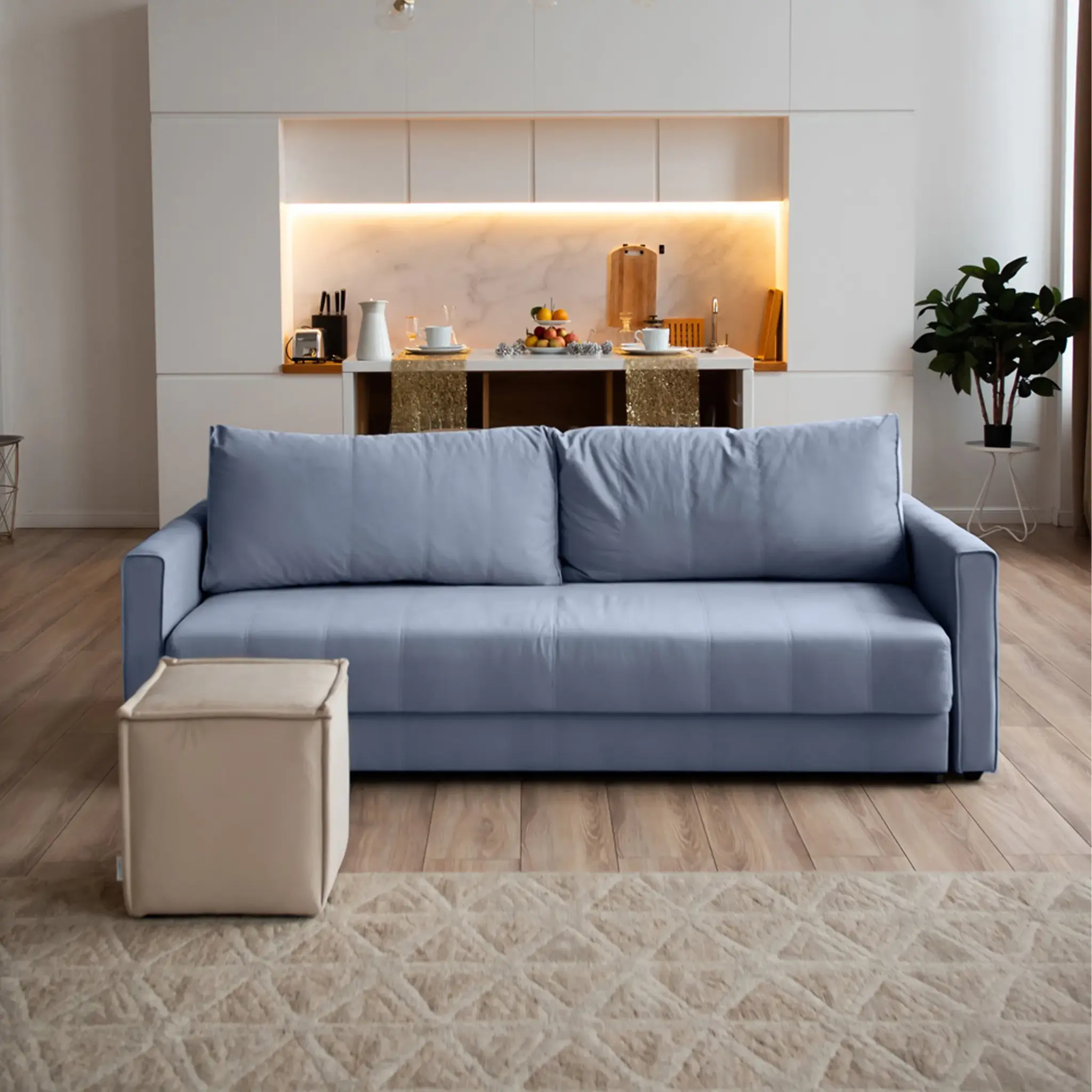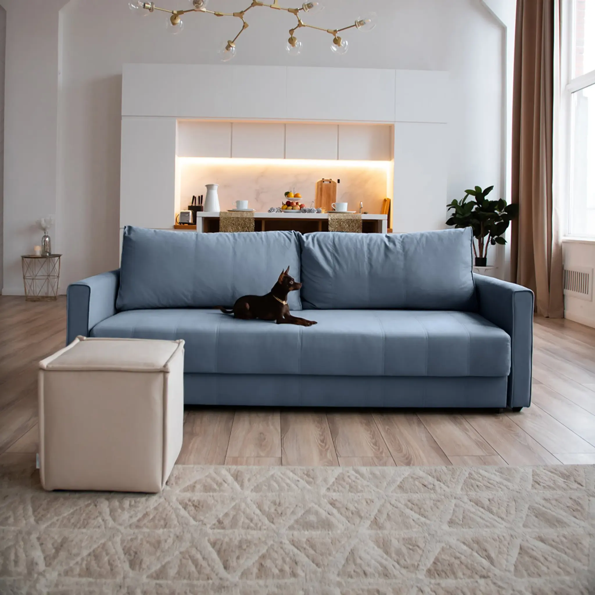 СКАНДИ Диван тканевый прямой синий