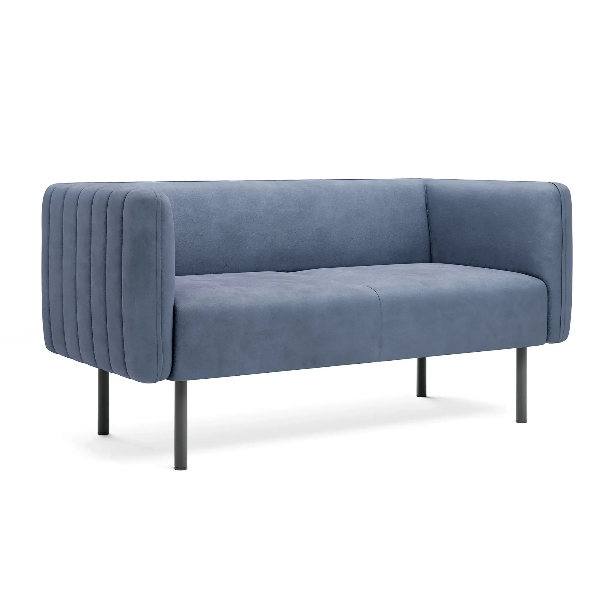 ЮТА Диван прямой синий ППУ, с черными ножками