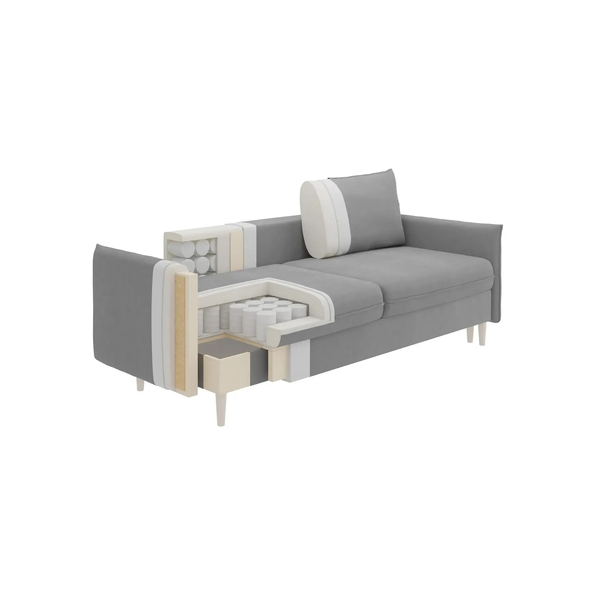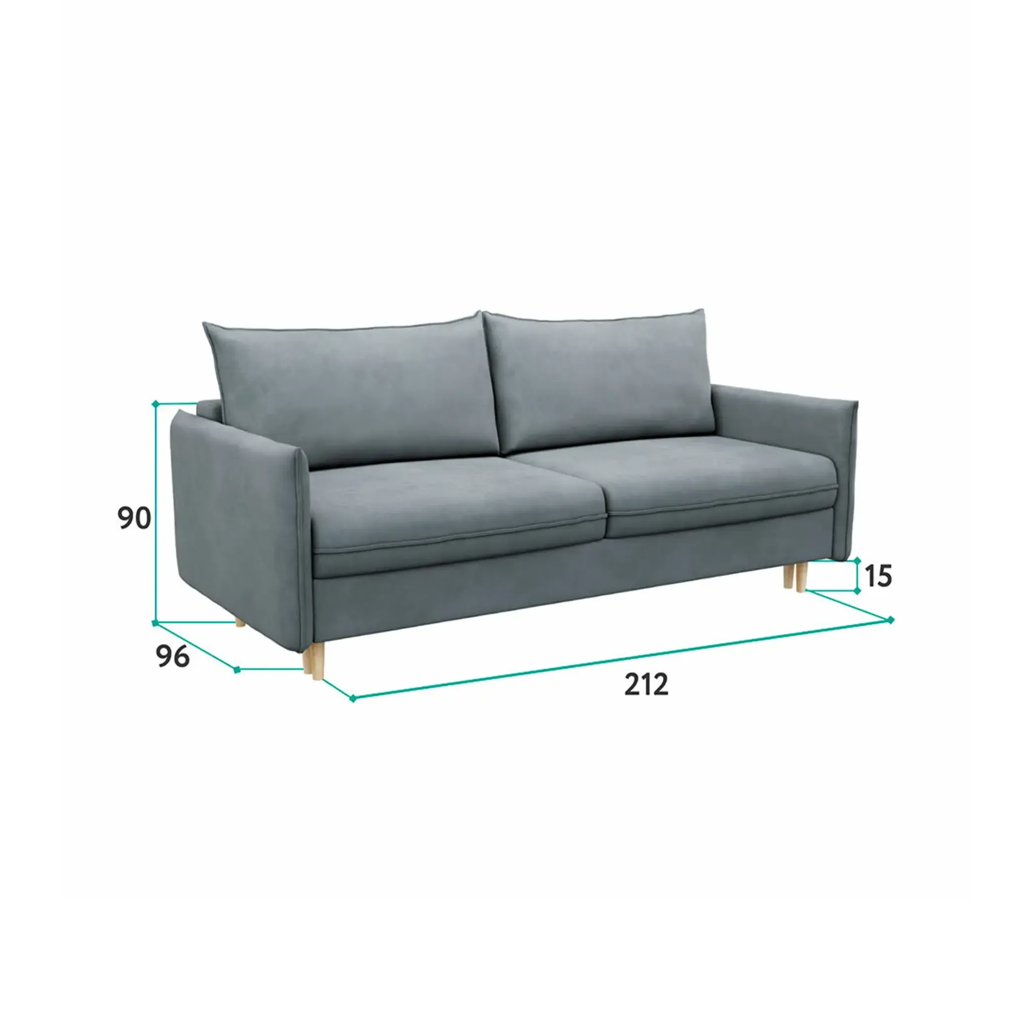 Сканди - ультрасовременная модель в любимом многими скандинавском стиле. Благодаря лаконичным линиям силуэта и простым формам диван отлично впишется в современный интерьер. Почему вам понравится диван «Сканди»: Гарантия 18 месяцев: мы уверены в качестве своей продукции.Независимый пружинный блок обеспечивает здоровый сон и комфортный отдых.Обивка велюр Velutto: мягкий бархатистый велюр со слегка матовой фактурой с эффектом легкой чистки.Место для хранения: под сиденьем расположен вместительный короб для одеял и подушек.Высокие ножки облегчают уборку под диваном. Узкие подлокотники экономят пространство и при этом удобные и функциональные. Большие мягкие подспинные подушки обеспечивают комфортную посадку и гарантируют полноценный отдых. Характеристики:  Габариты (см): 212х96х90 Спальное место (см): 190х144 Высота посадочного места (см): 46 Короб для белья: Есть Наполнитель: Независимый пружинный блок/Пружины змейка / ППУ Каркас: Массив дерева/Фанера/ДСП/ДВП Вес (кг): 91  Фабрика D1 является российским производителем мебели. Мы осуществляем полный производственный цикл всего представленного ассортимента. Все используемые материалы и комплектующие сертифицированы и соответствуют САНПиН. На всю нашу продукцию мы даём гарантию 18 месяцев.