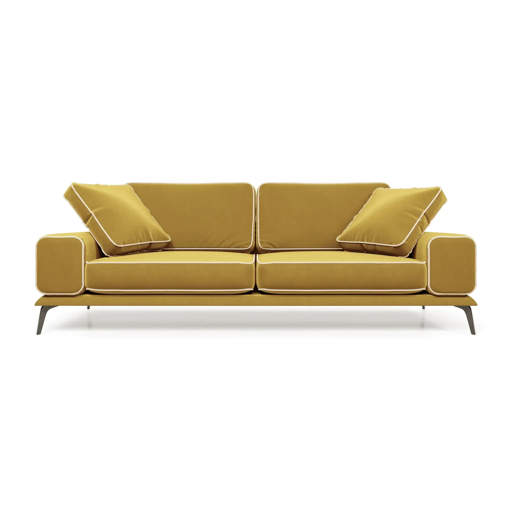 Диван Солнечное побережье отличается легкостью и воздушностью благодаря высоким ножкам, которые меняют визуальное восприятие объемов, создавая современный и стильный образ. Сбалансированный дизайн с широкими подлокотниками и пышными подушками создает ощущение комфорта и уюта. Почему вам понравится диван «Солнечное побережье»:  Гарантия 18 месяцев: мы уверены в качестве своей продукции. Внутри дивана находится гипоаллергенный высокоэластичный наполнитель «Аселекс», который сохраняет заданную форму годами. Обивка велюр Novus от Chistetika: технология Waterproof делает ткань устойчивой к влаге и, благодаря этому, обивка долговечна и проста в уходе. Высокие ножки облегчают уборку под диваном. Подушки в комплекте: мягкость и уют для максимального комфорта.  Ширина дивана делает его идеальным выбором для владельцев малогабаритных квартир, желающих добавить комфорт и уют в свое пространство. Мягкие подушки обеспечивают тепло и уют, а разнообразие обивочных тканей помогает подобрать идеальный вариант для вашего интерьера. Спинка и сиденье выполнены из высокоэластичного полиуретана, а прочные металлические ножки обеспечивают дополнительную устойчивость. Характеристики  Габариты: 230х107х87 см Высота сиденья: 42 см Максимальная нагрузка: 220 кг Нераскладной интерьерный диван Прочный каркас из высококачественной фанеры  Фабрика D1 является российским производителем мебели. Мы осуществляем полный производственный цикл всего представленного ассортимента. Все используемые материалы и комплектующие сертифицированы и соответствуют САНПиН. На всю нашу продукцию мы даём гарантию 18 месяцев.
