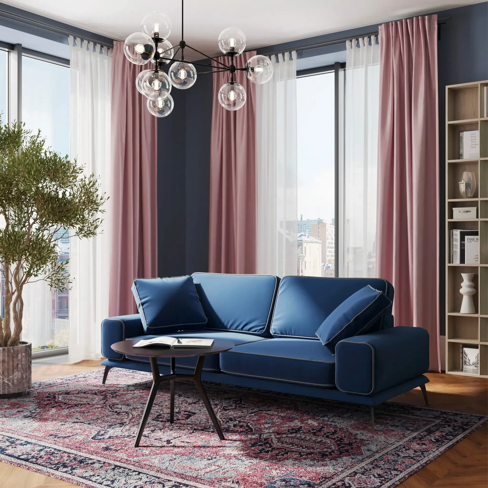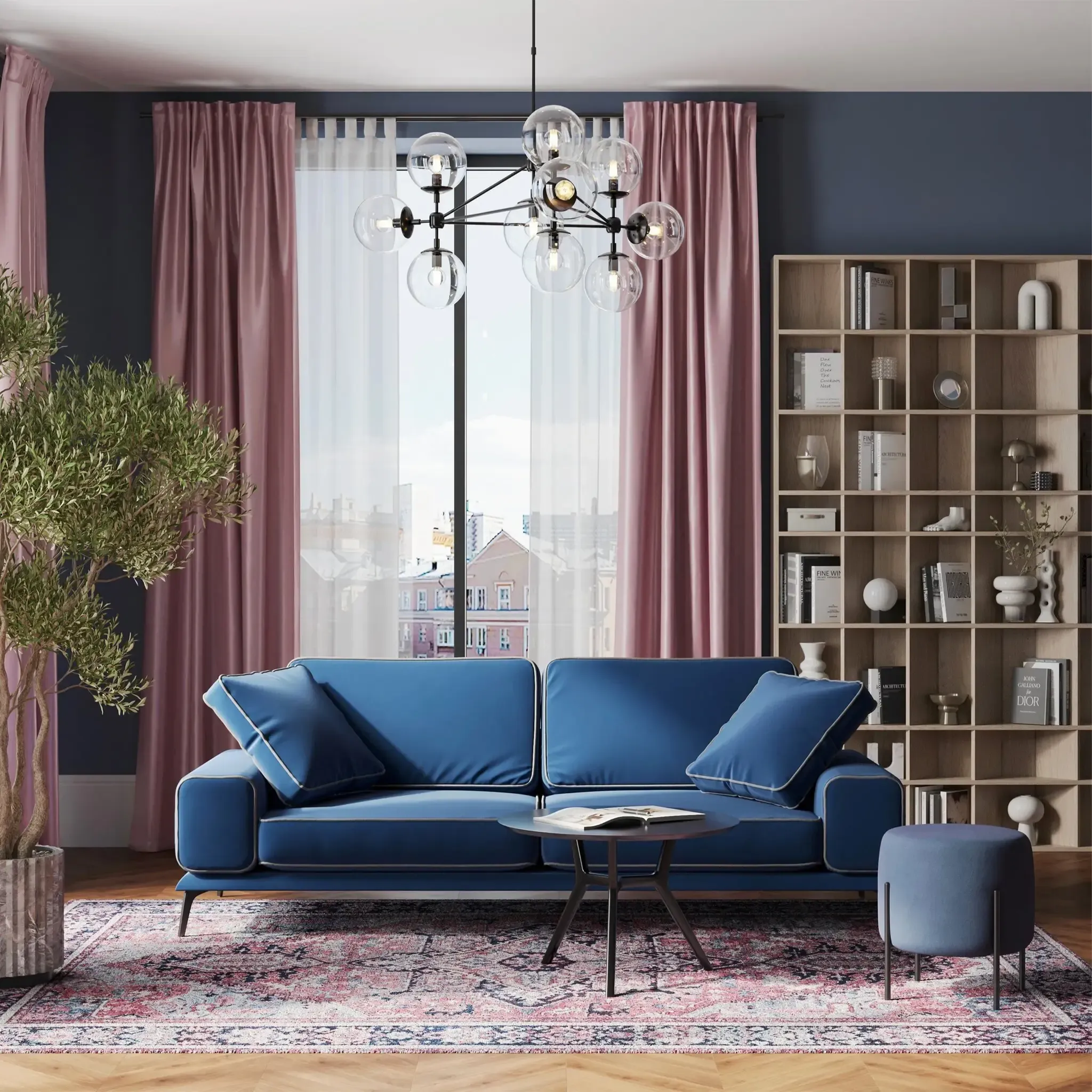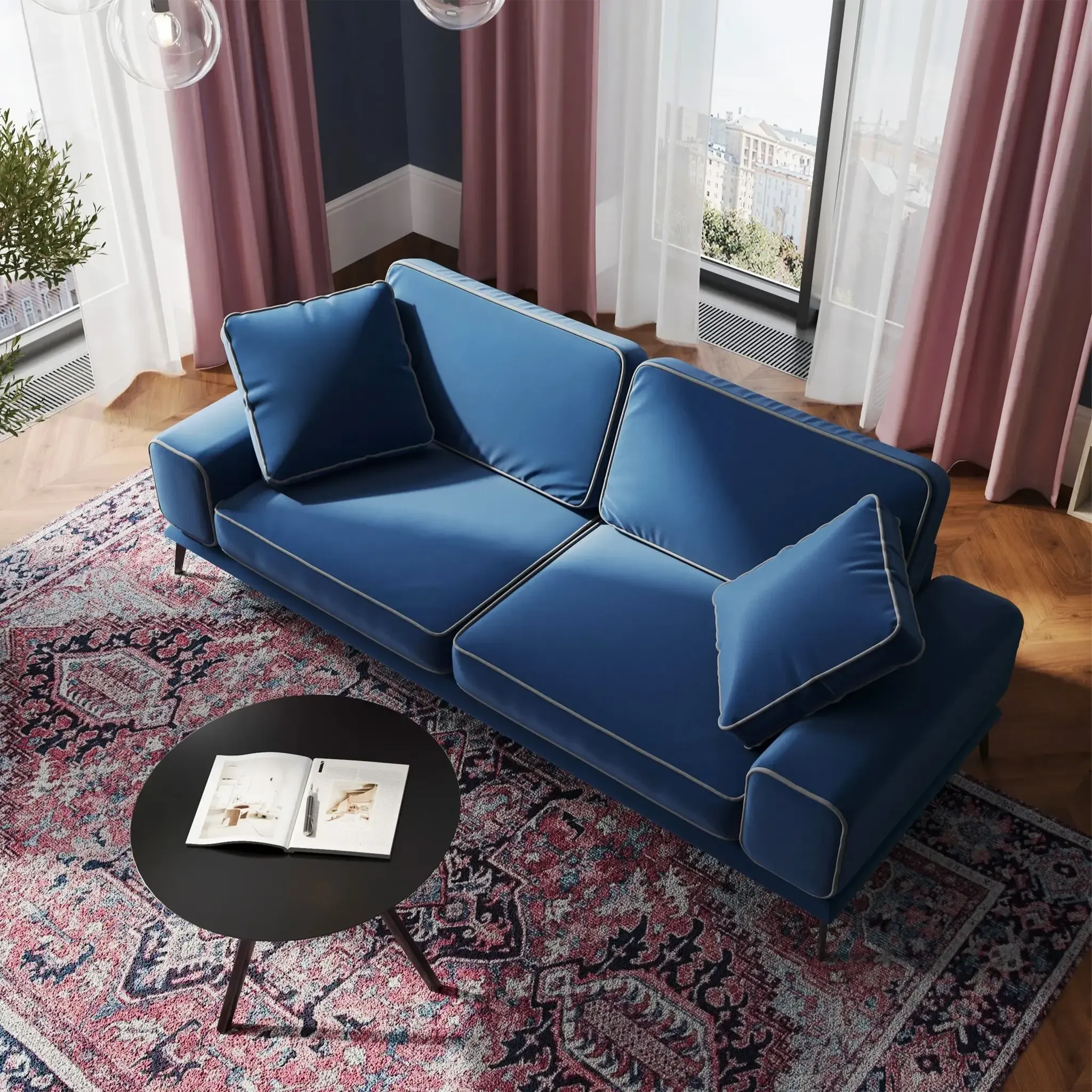 Диван Солнечное побережье отличается легкостью и воздушностью благодаря высоким ножкам, которые меняют визуальное восприятие объемов, создавая современный и стильный образ. Сбалансированный дизайн с широкими подлокотниками и пышными подушками создает ощущение комфорта и уюта. Почему вам понравится диван «Солнечное побережье»:  Гарантия 18 месяцев: мы уверены в качестве своей продукции. Внутри дивана находится гипоаллергенный высокоэластичный наполнитель «Аселекс», который сохраняет заданную форму годами. Обивка велюр Novus от Chistetika: технология Waterproof делает ткань устойчивой к влаге и, благодаря этому, обивка долговечна и проста в уходе. Высокие ножки облегчают уборку под диваном. Подушки в комплекте: мягкость и уют для максимального комфорта.  Ширина дивана делает его идеальным выбором для владельцев малогабаритных квартир, желающих добавить комфорт и уют в свое пространство. Мягкие подушки обеспечивают тепло и уют, а разнообразие обивочных тканей помогает подобрать идеальный вариант для вашего интерьера. Спинка и сиденье выполнены из высокоэластичного полиуретана, а прочные металлические ножки обеспечивают дополнительную устойчивость. Характеристики  Габариты: 230х107х87 см Высота сиденья: 42 см Максимальная нагрузка: 220 кг Нераскладной интерьерный диван Прочный каркас из высококачественной фанеры  Фабрика D1 является российским производителем мебели. Мы осуществляем полный производственный цикл всего представленного ассортимента. Все используемые материалы и комплектующие сертифицированы и соответствуют САНПиН. На всю нашу продукцию мы даём гарантию 18 месяцев.