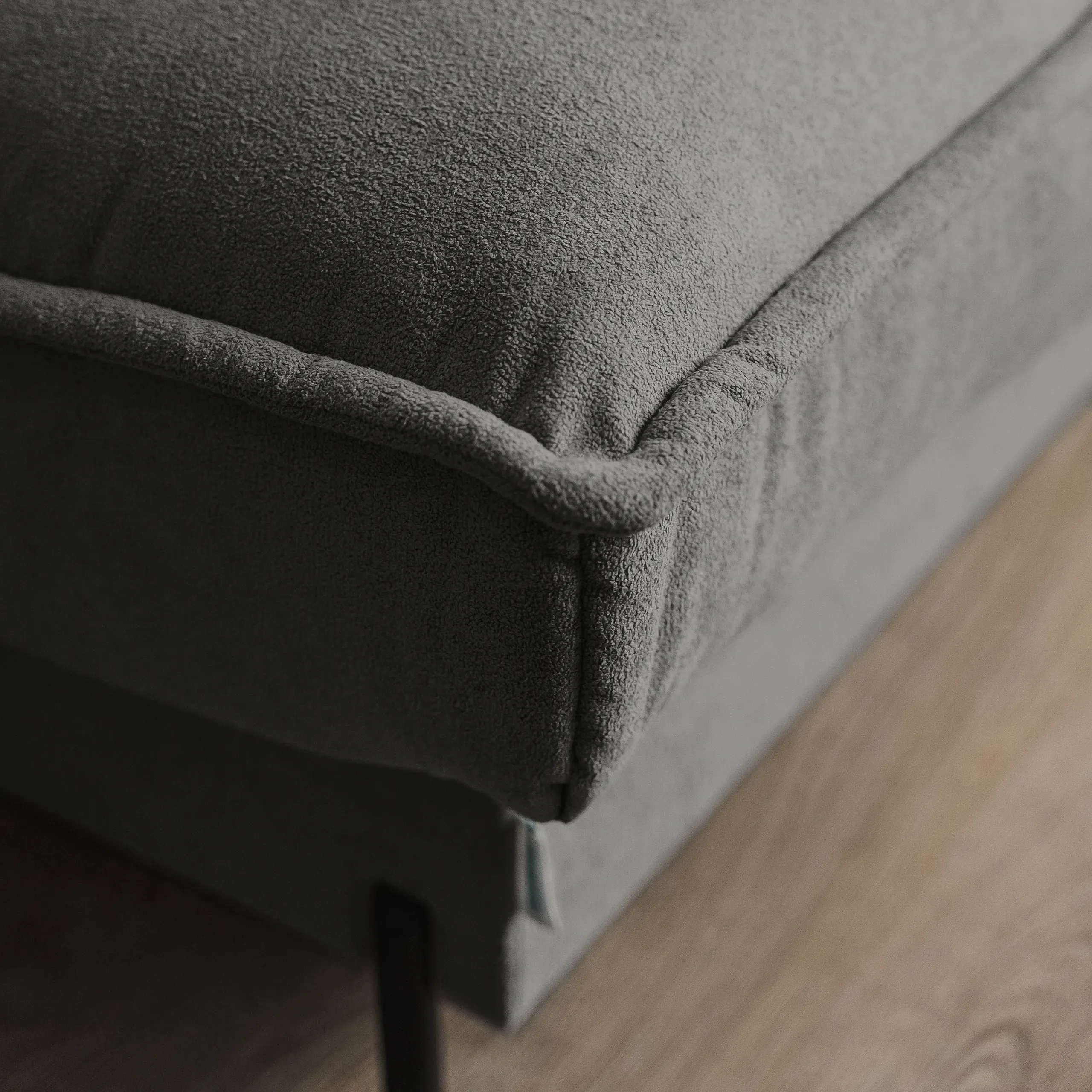 Представьте, как приятно после долгого дня погрузиться в мягкие объятия уютного дивана. «Вдохновение дня» создан именно для таких моментов — он сочетает в себе лаконичный скандинавский шарм и продуманную функциональность. Высокие металлические ножки придают ему воздушность, а отсутствие подлокотников делает пространство визуально легким и современным.