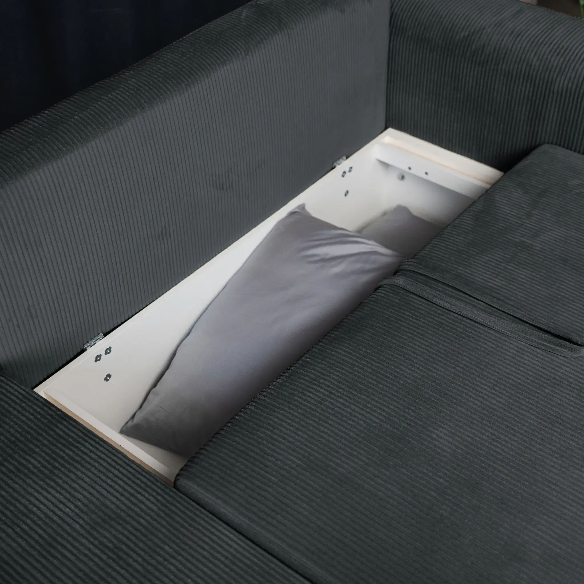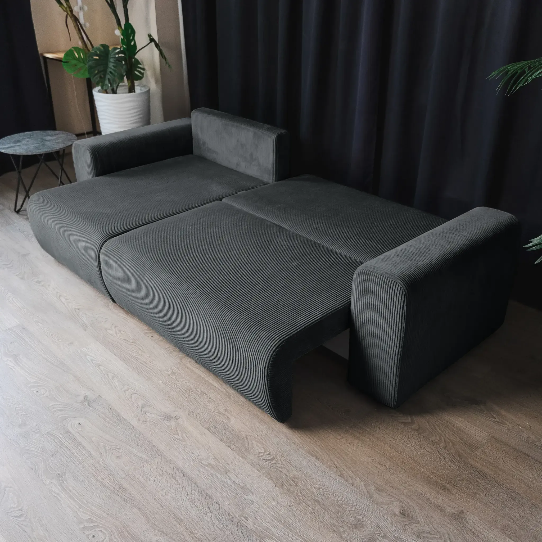 Всего два движения — и диван превращается в просторное спальное место размером 140х200 см, готовое принять вас или ваших гостей. Вместительный бельевой короб под сиденьем предоставляет дополнительное место для хранения подушек, одеял и других мелочей, помогая поддерживать порядок.